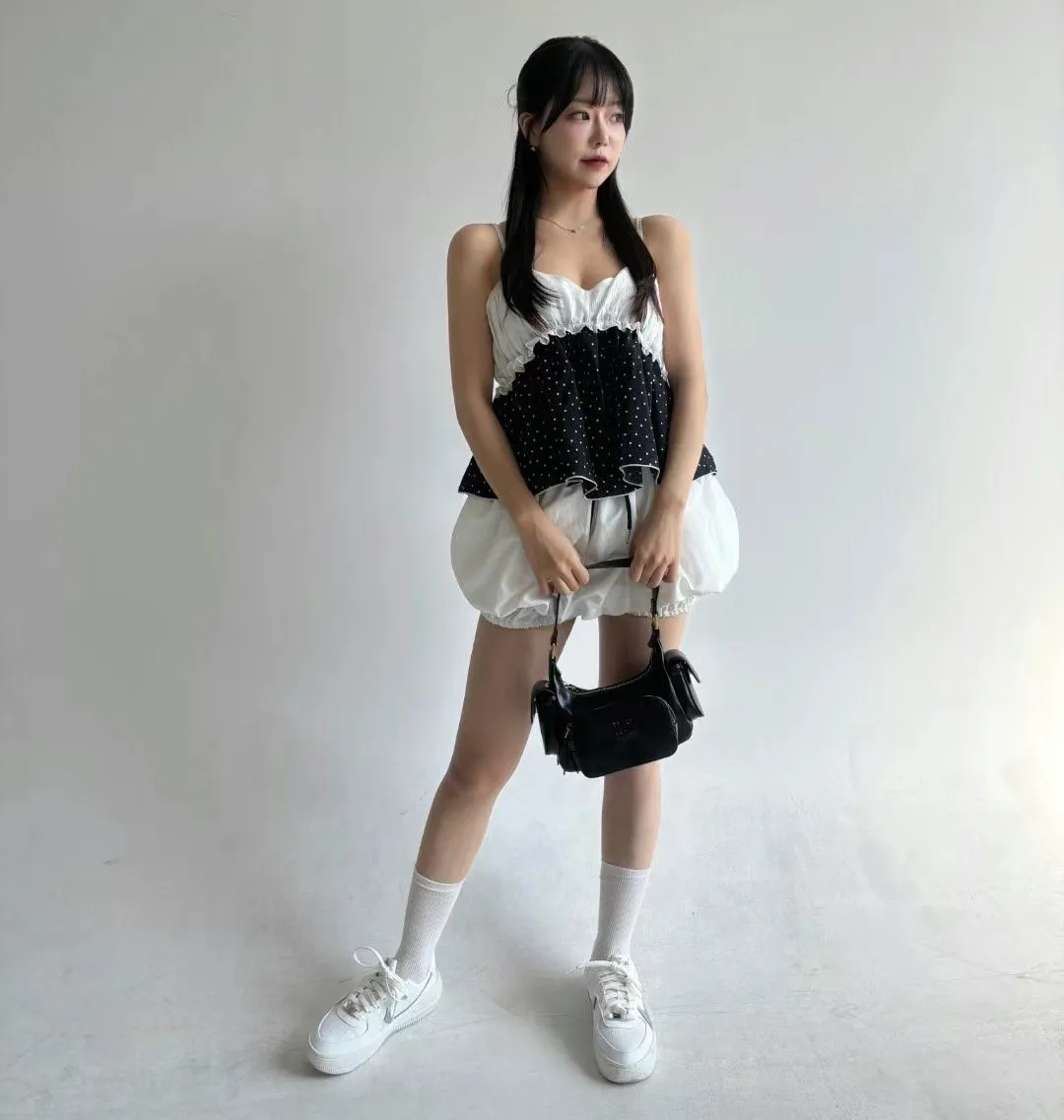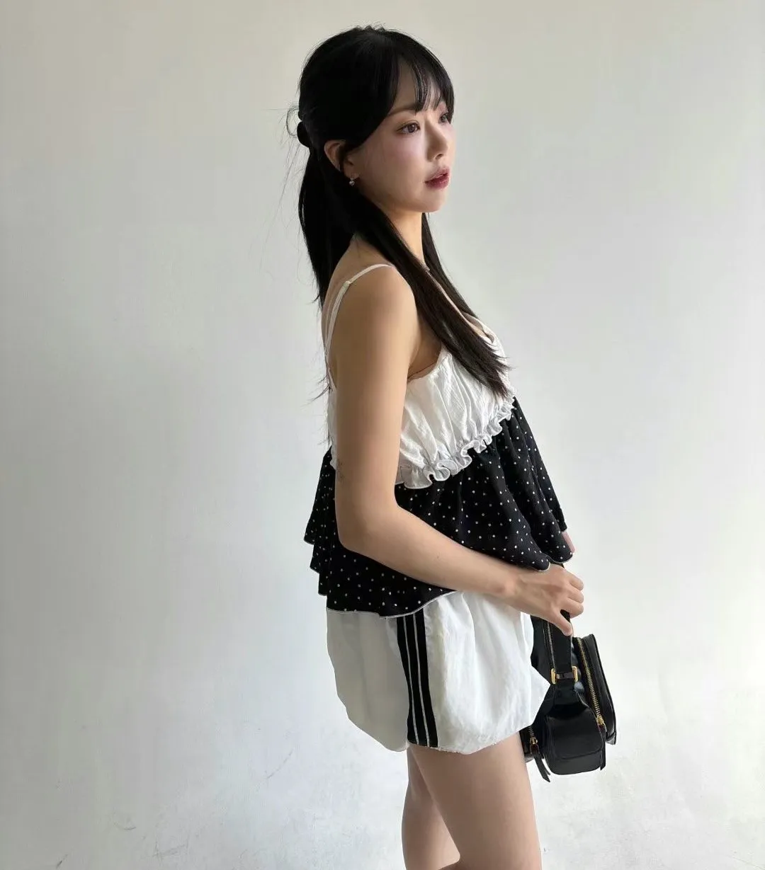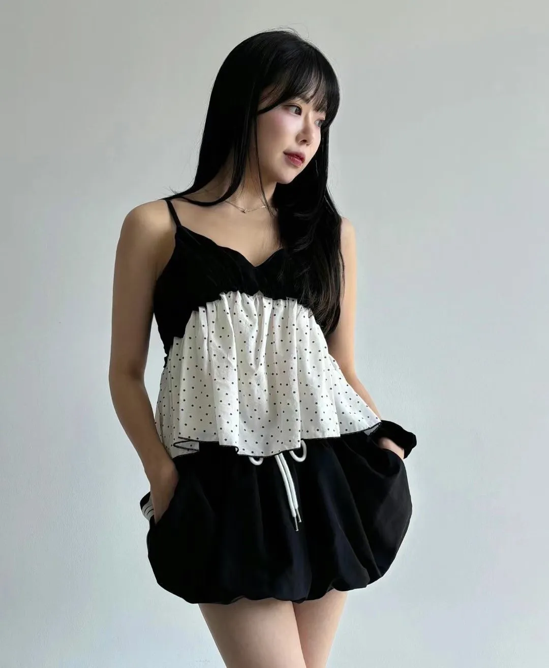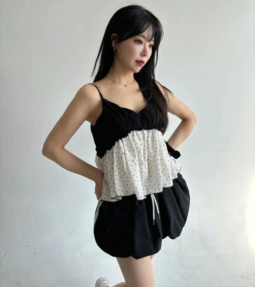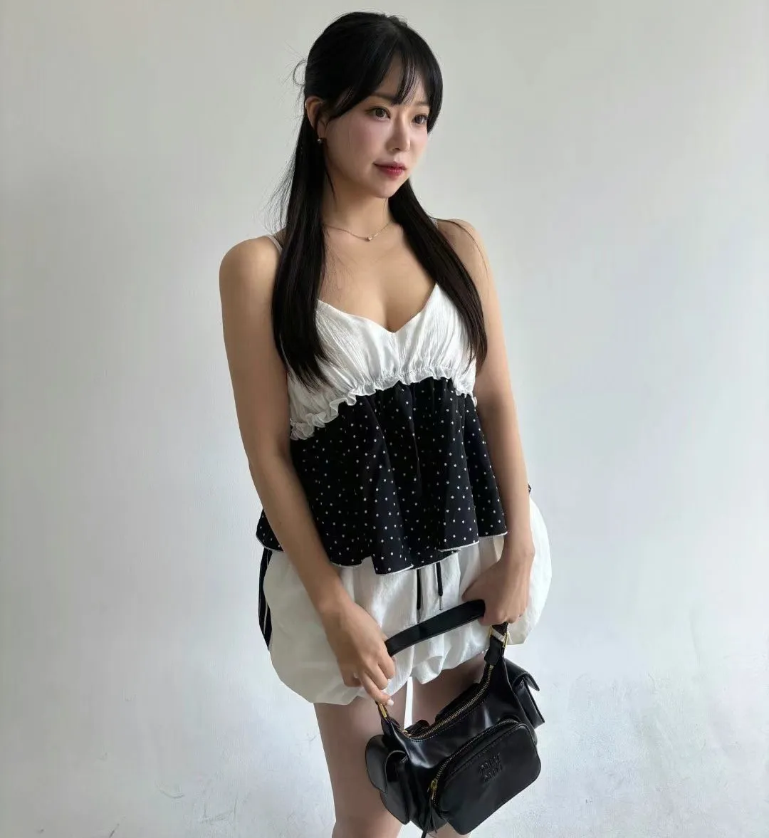 棉+聚酯 下擺細點點 肩帶可調 側拉鍊 穿到M號