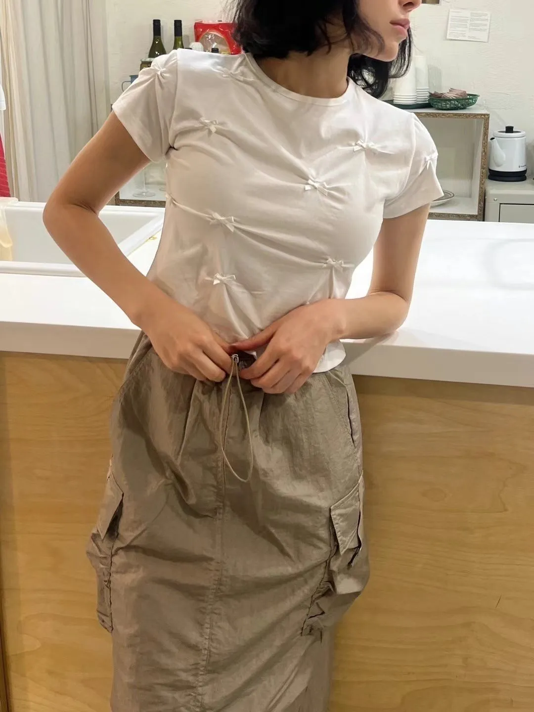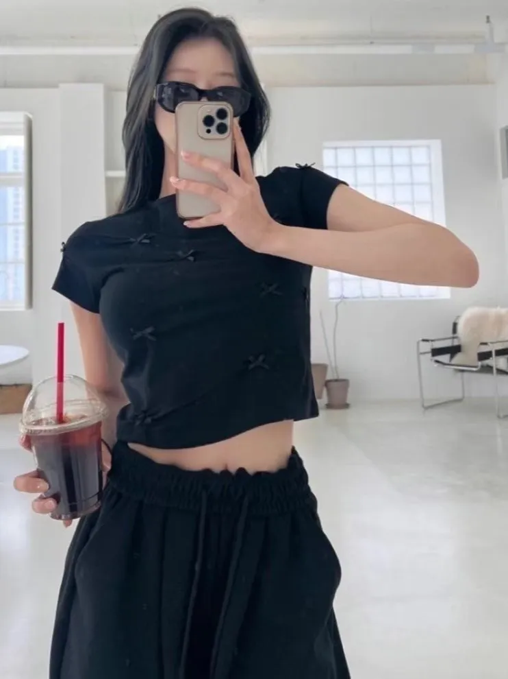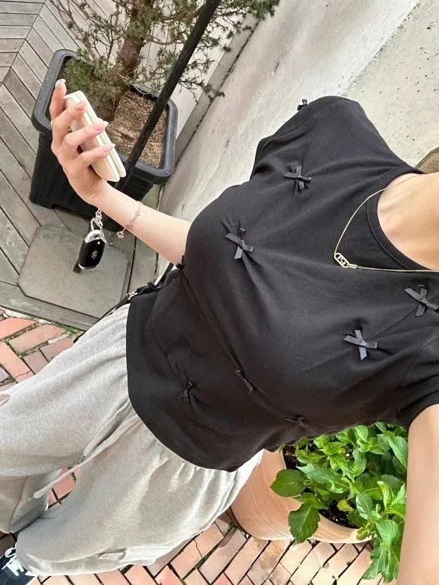 棉 透氣舒適 立體蝴蝶結 短版好比例 合身款 穿到M號