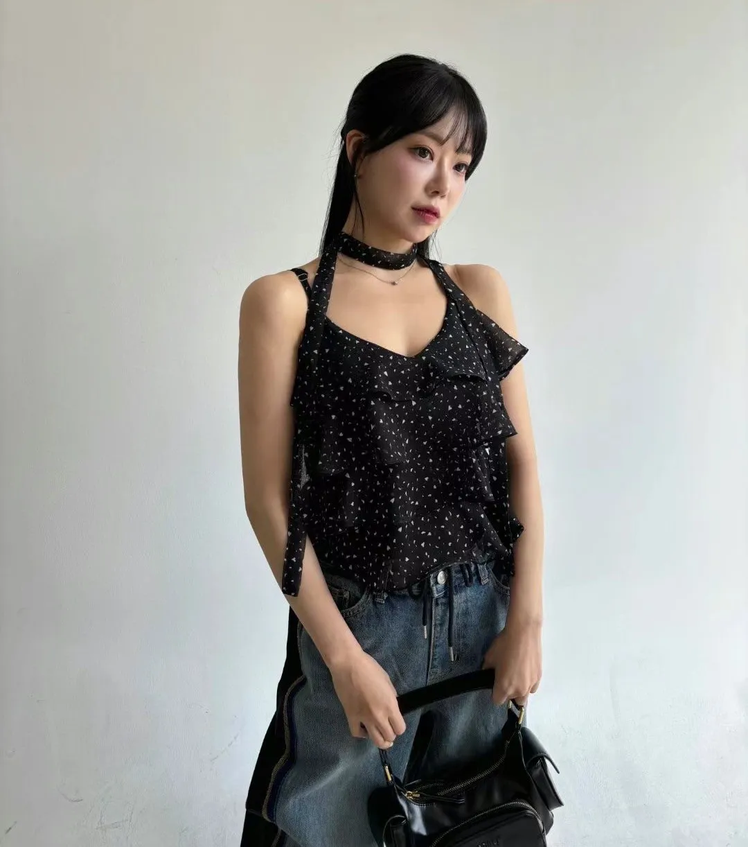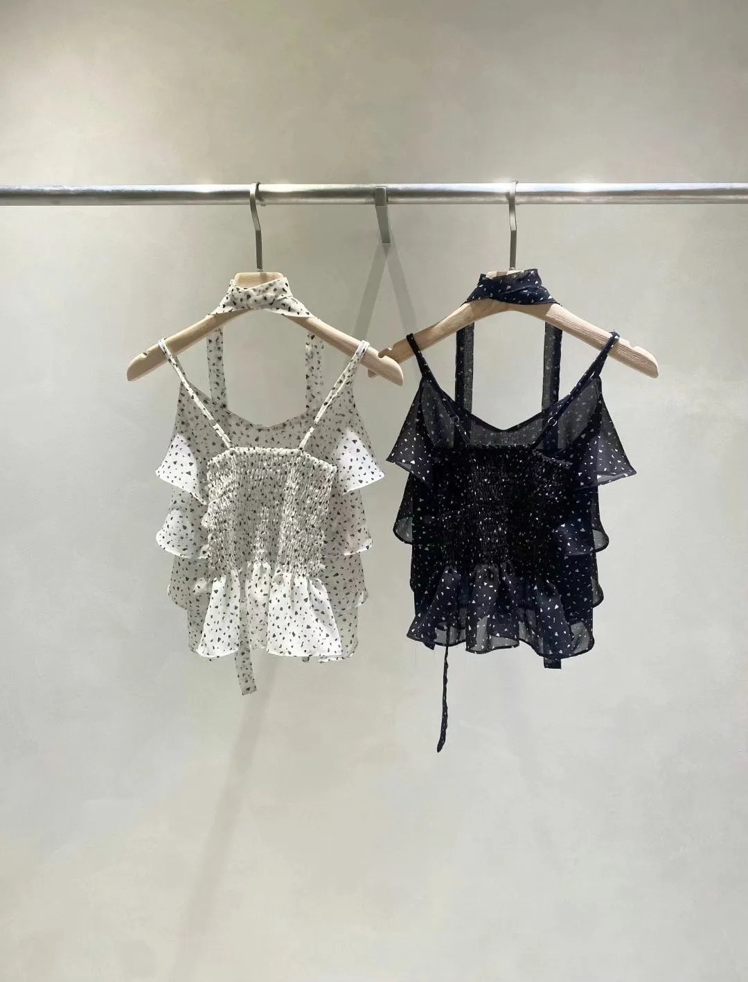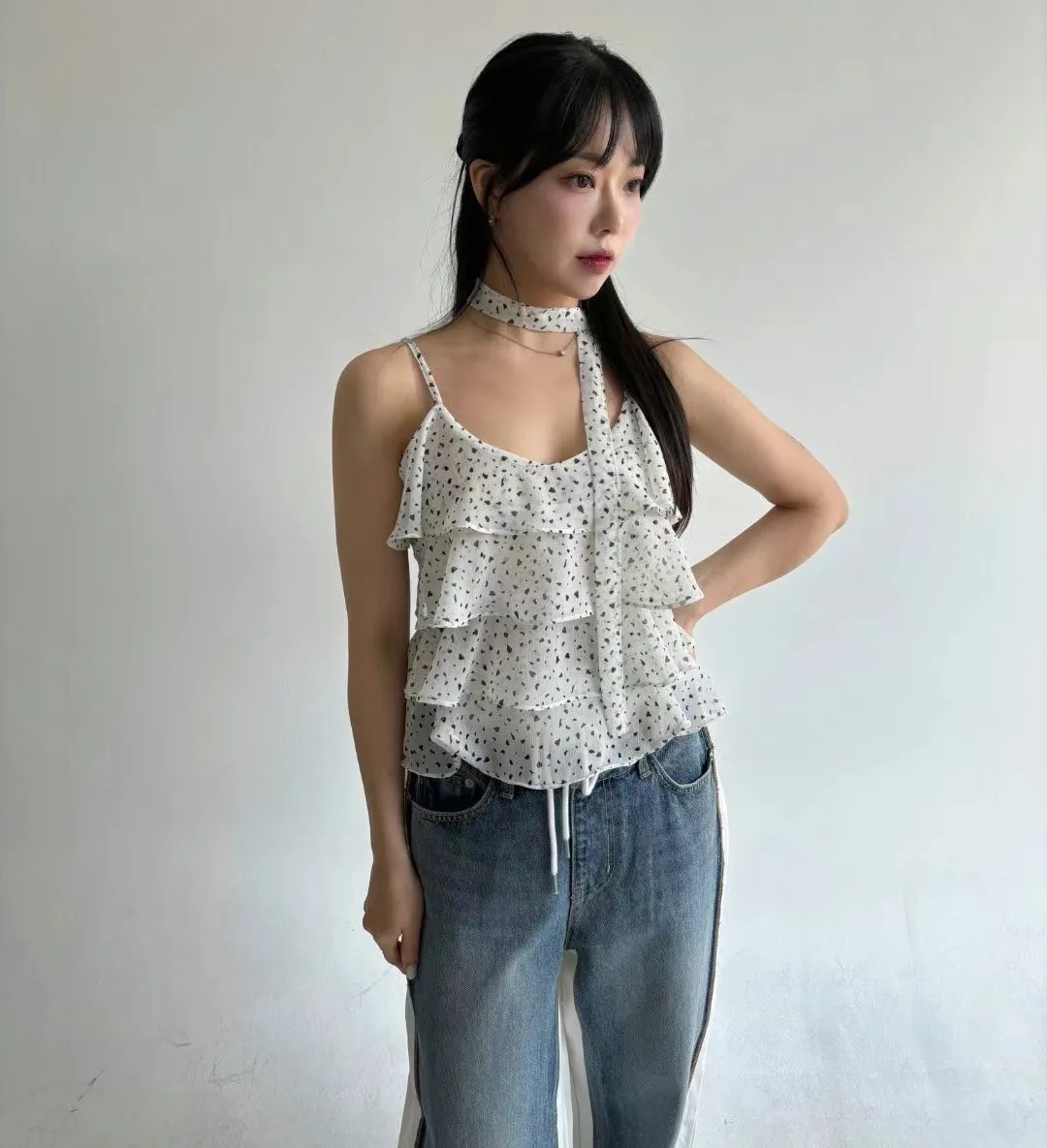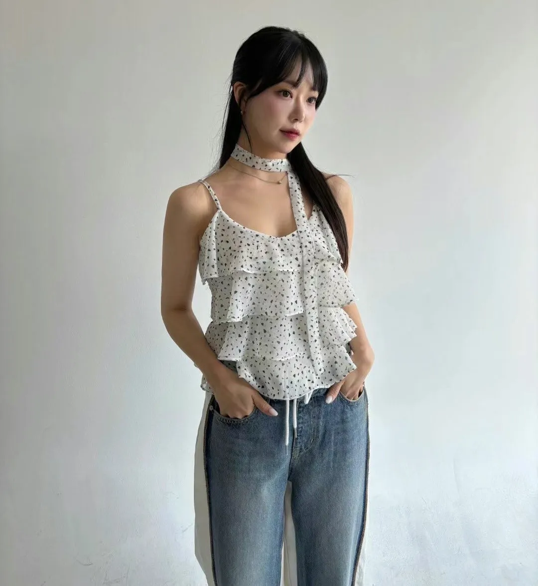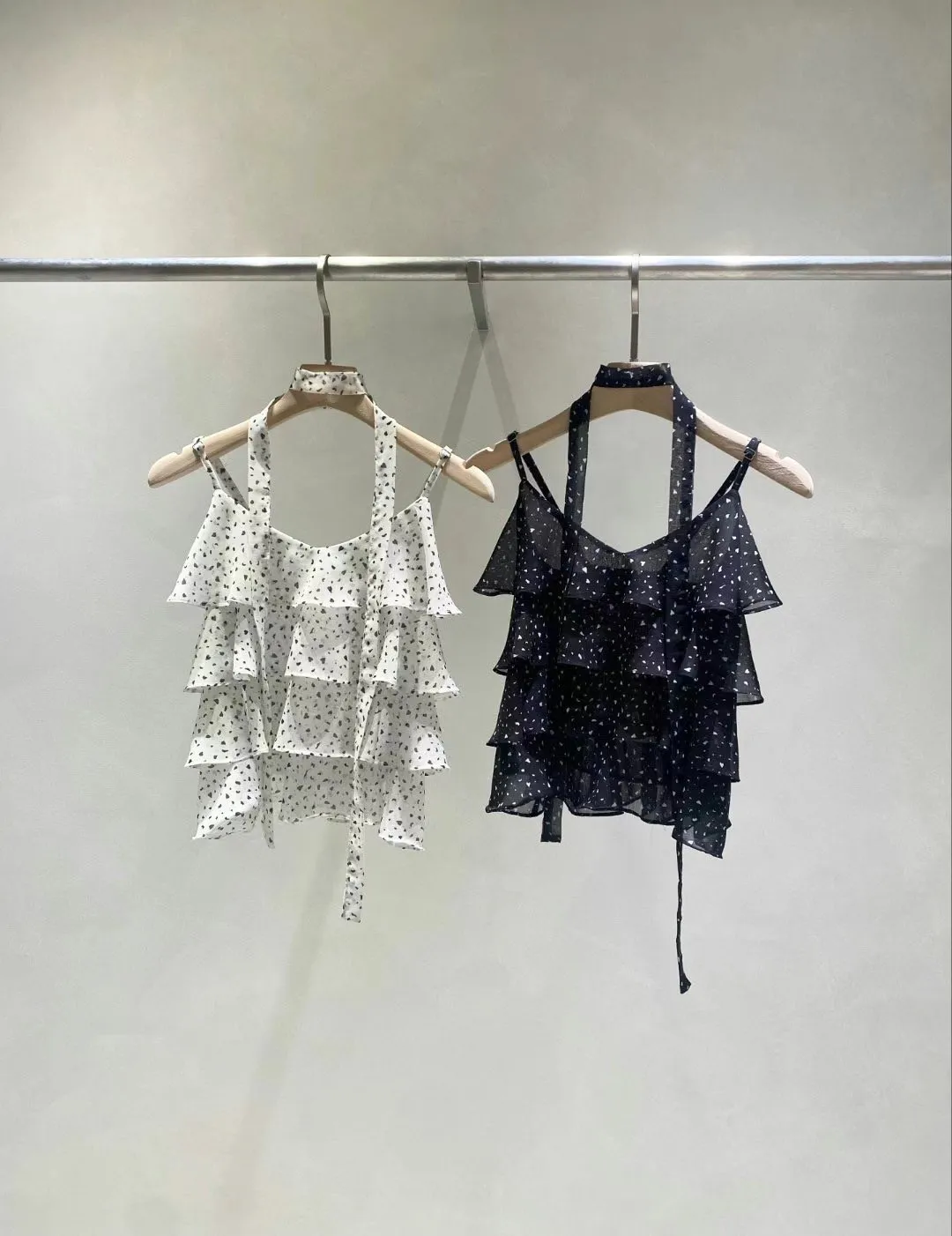 雪紡 輕薄飄逸 裙襬蛋糕層次 肩帶可調 背後彈性