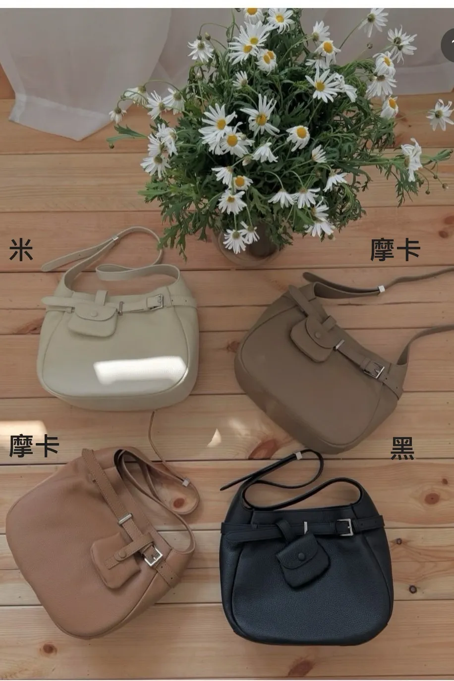 牛皮 內層布 五孔釦調長度 建議單肩背 10*27*21公分