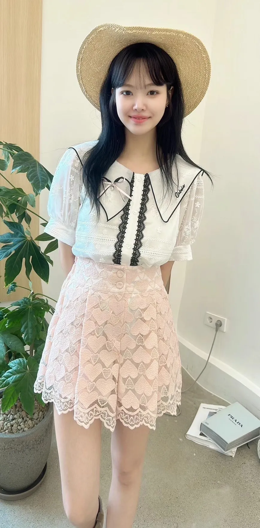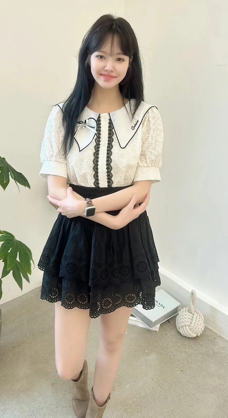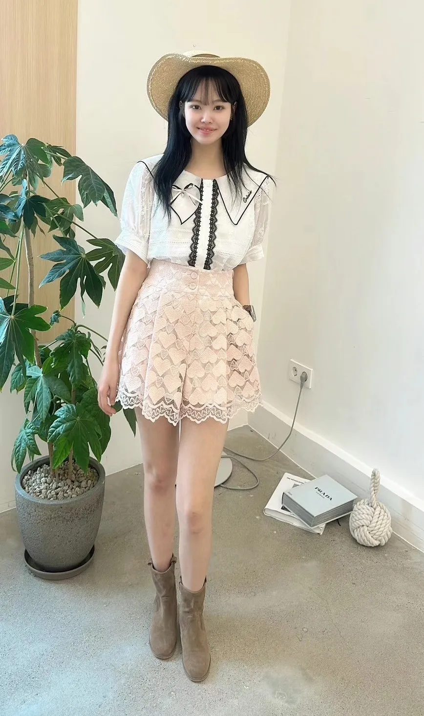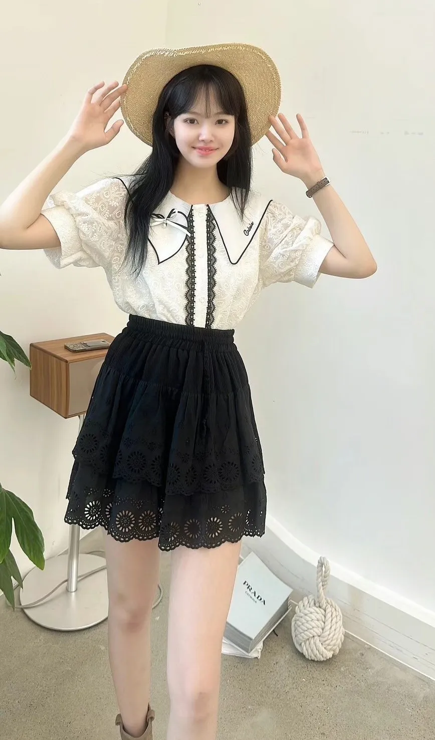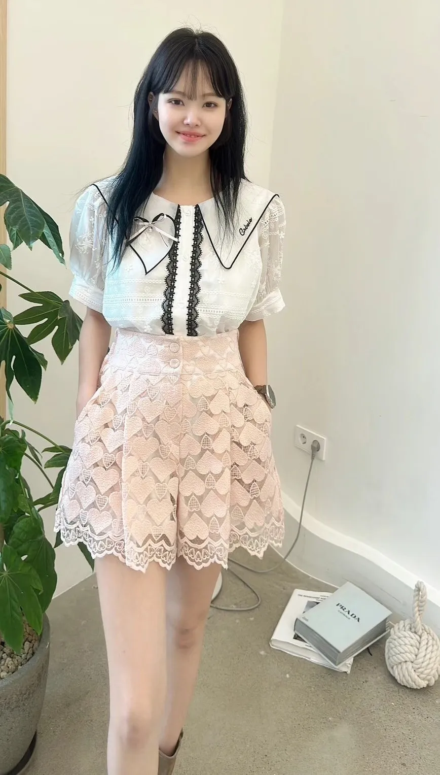 白=棉,米=布蕾絲,領口上的蝴蝶結是別針可拆
