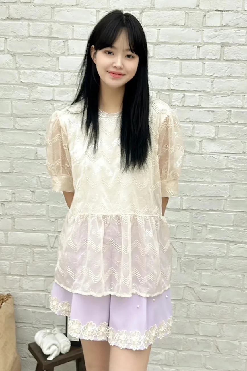 雪紡,波浪精緻繡線 薄款透光 娃娃裝下擺