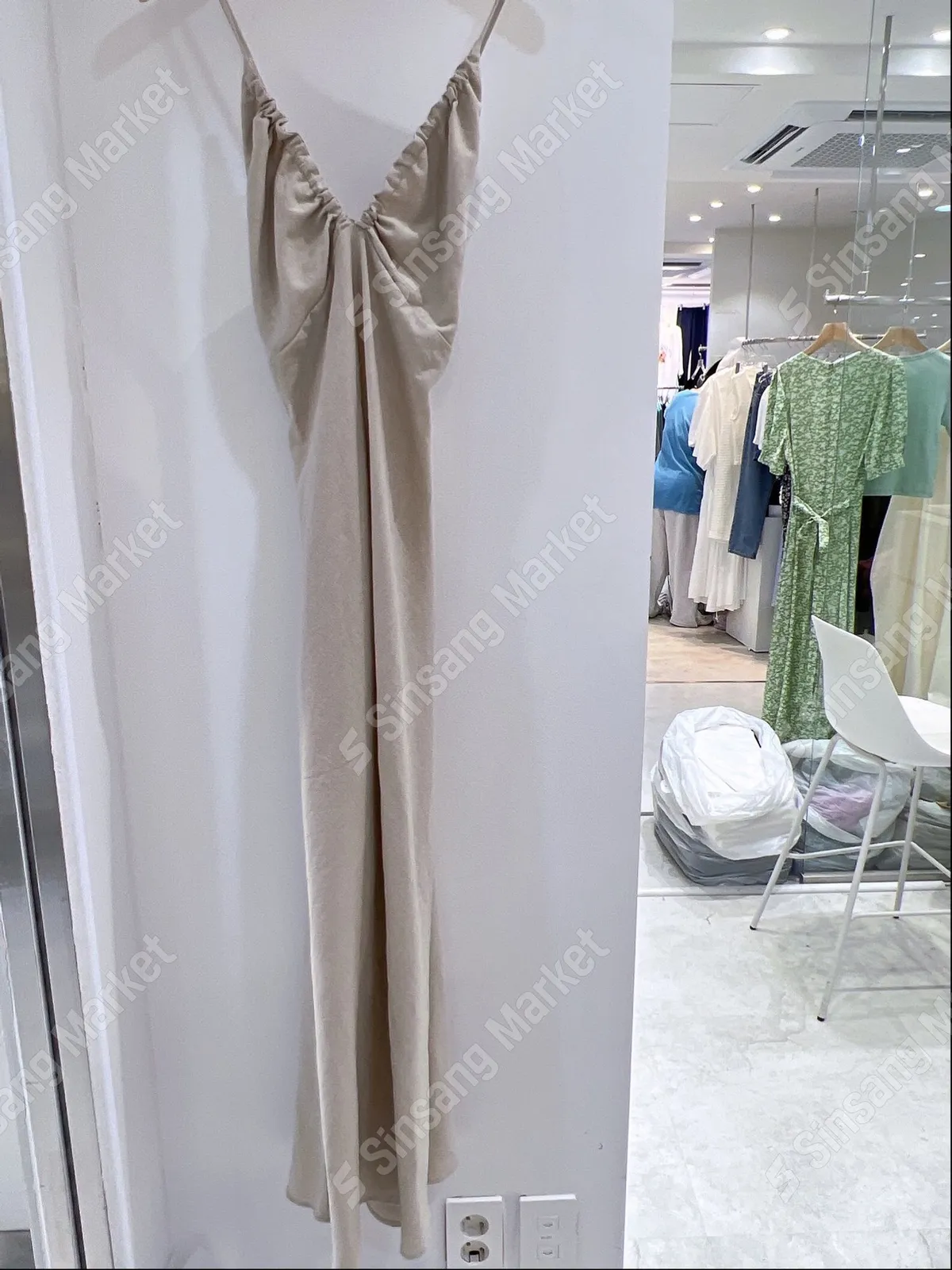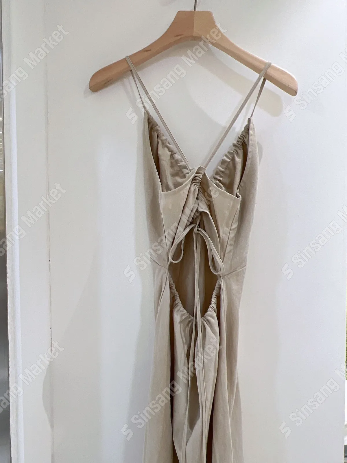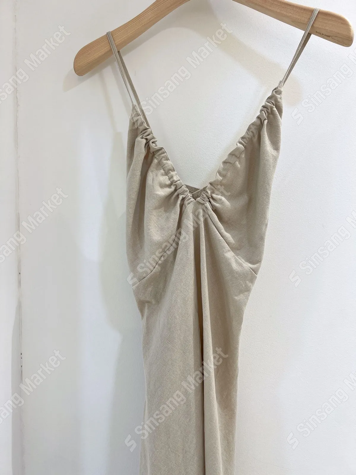 棉+亞麻 韓國製 深V細肩帶綁調 細腰車線 版型很好看 夏天合適