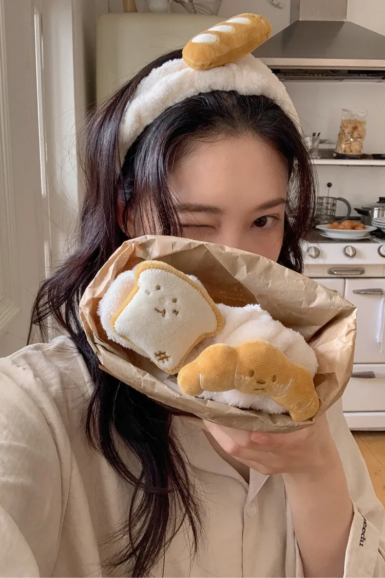 JUU015麵包造型毛絨洗臉髮帶 法棍 吐司 牛角 售價$199