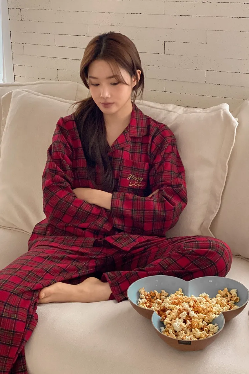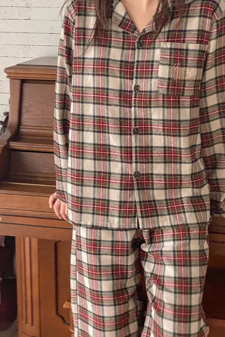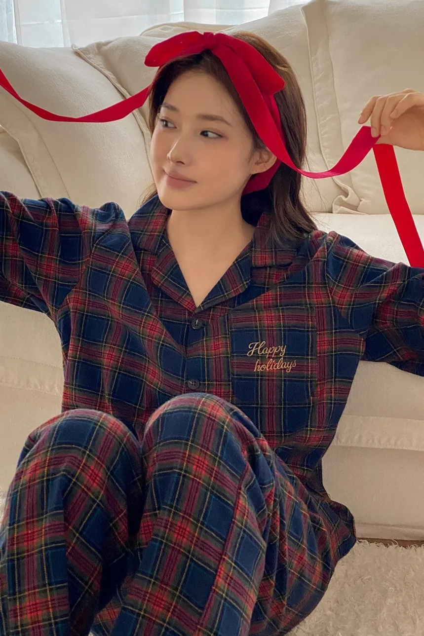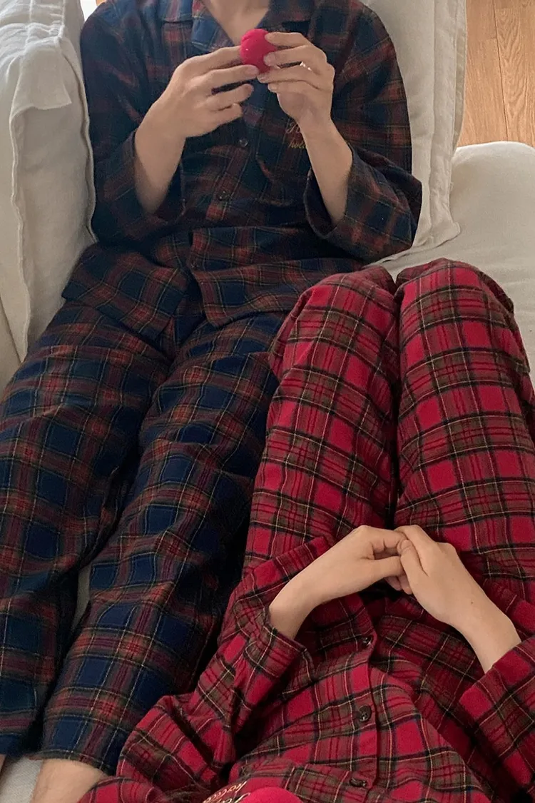 JUU016聖誕氣息格紋復古純棉睡衣套裝組 米 紅 藍 售價$899棉100%上衣尺寸cmL 胸寬56 肩寬42 袖長58 全長67XL 胸寬60 肩寬50 袖長60 全長77褲子尺寸cmL 腰寬32 臀寬55 大腿寬32 褲檔30 全長97XL 腰寬35 臀寬60 大腿寬34 褲檔32 全長102以下為紅色穿搭👇🏻 以下為藍色穿搭👇🏻 以下為米色穿搭👇🏻