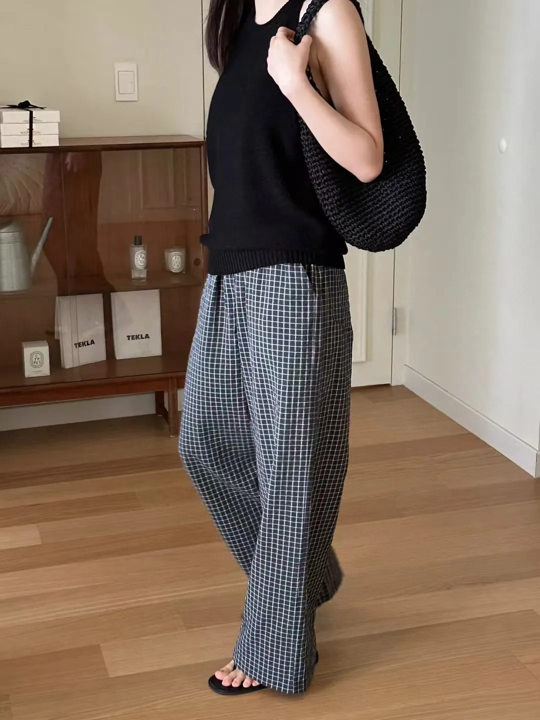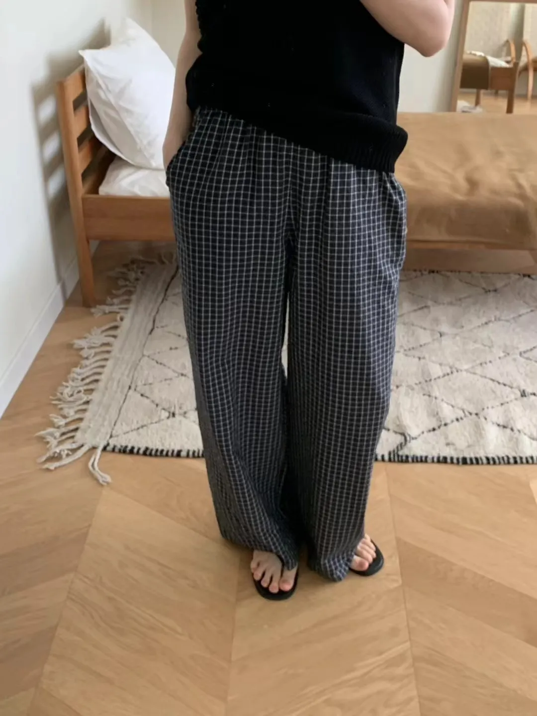 JY009新款細格紋鬆弛感長褲 白 黑 官網價$1360 線上價$1330