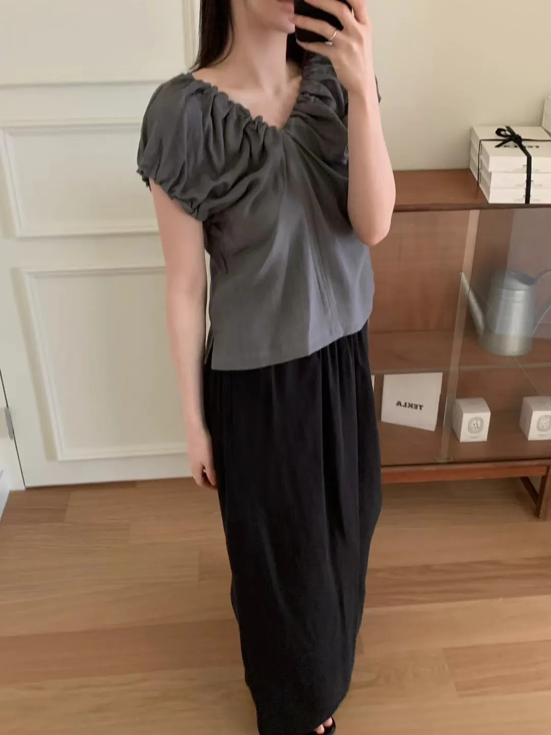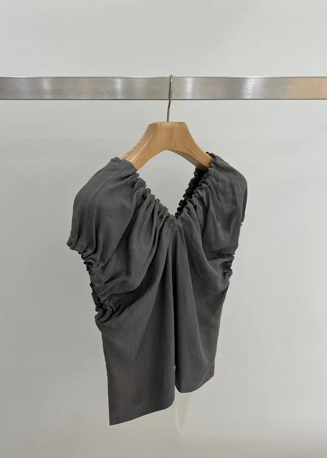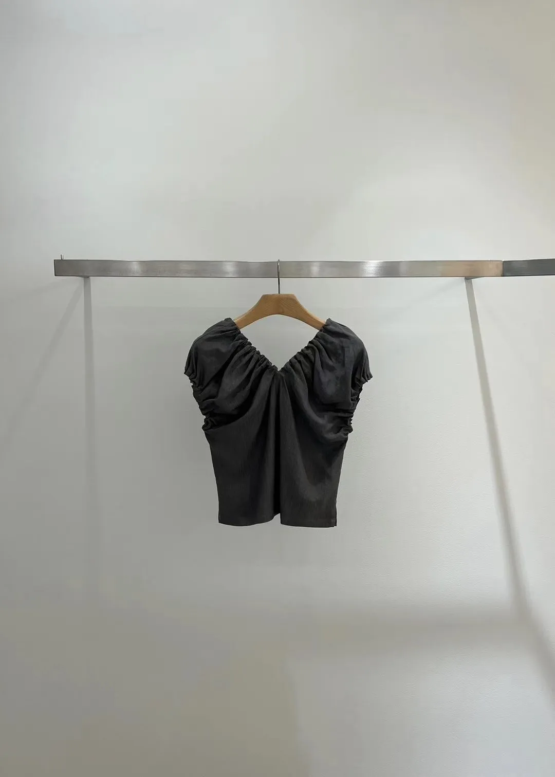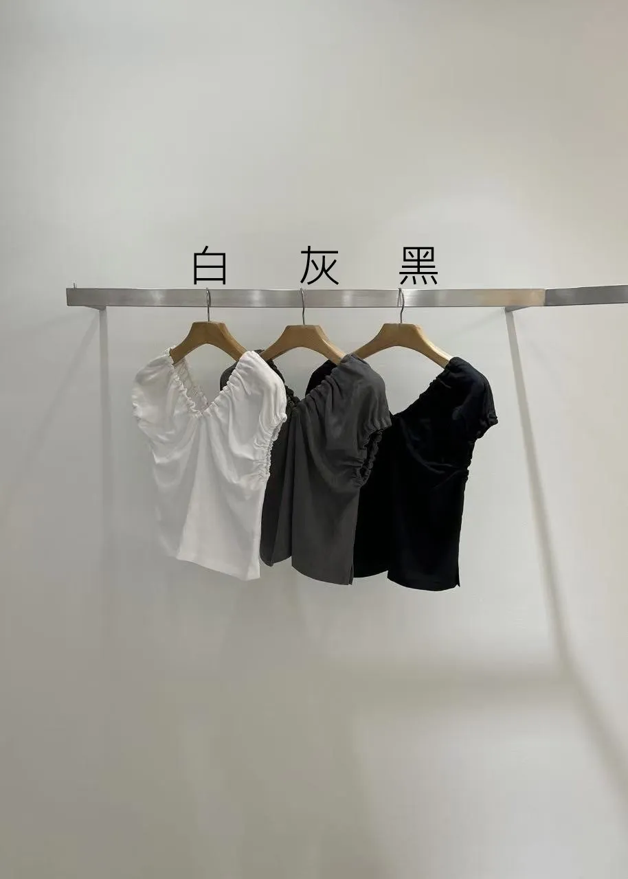 JY013顯瘦V領抓皺上衣 白 灰 黑 官網價$1280 線上價$1250