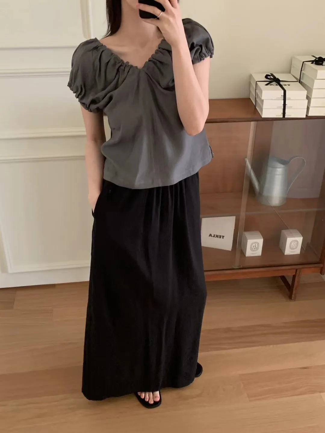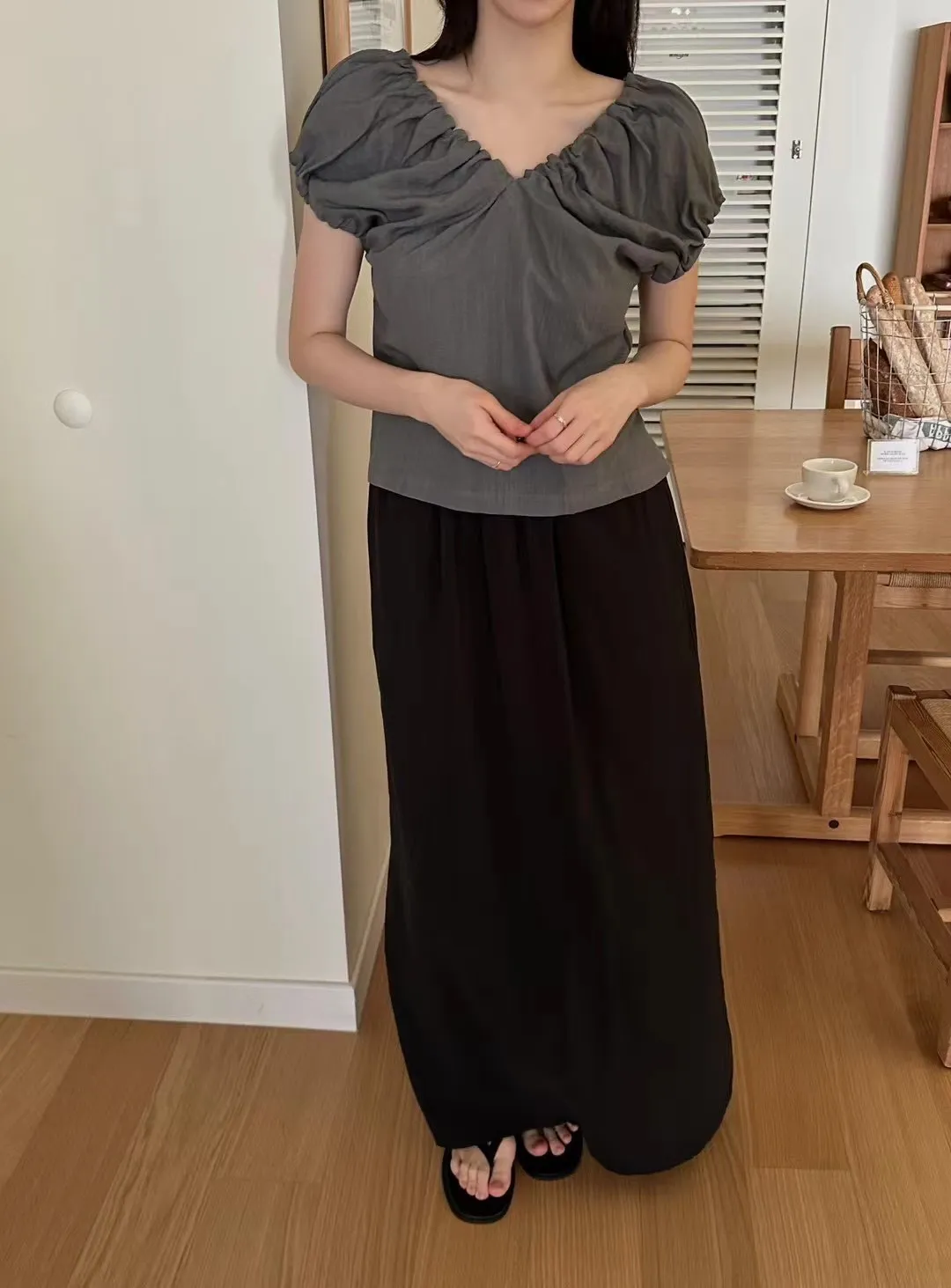 亞麻+縲縈 涼爽舒適 可拉一字領 側開叉 V領顯瘦