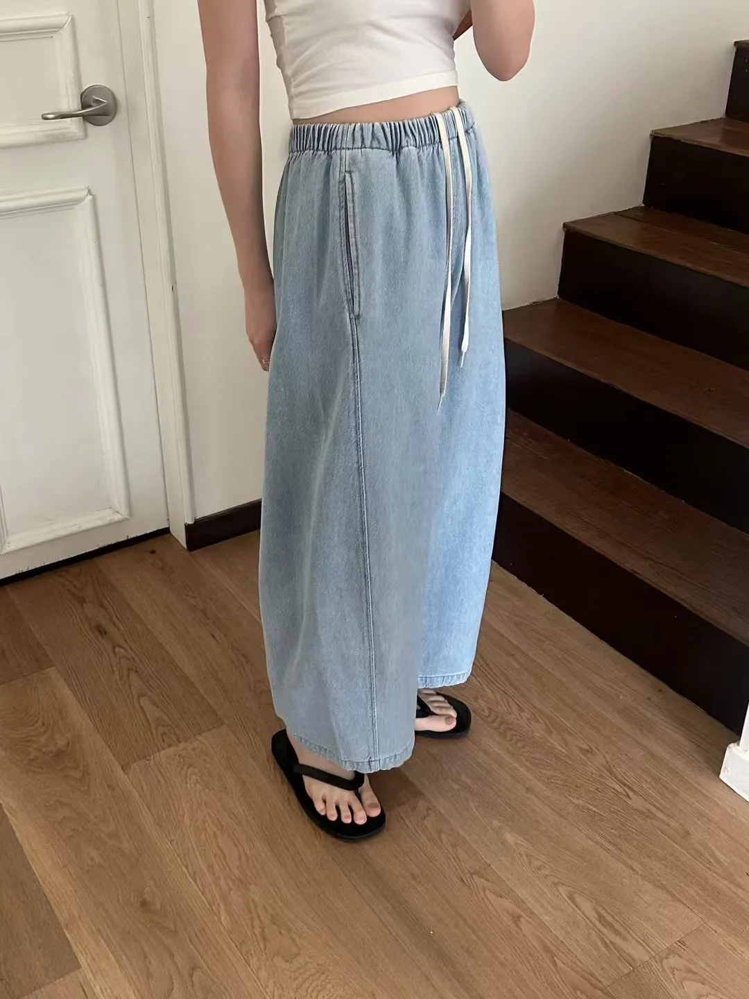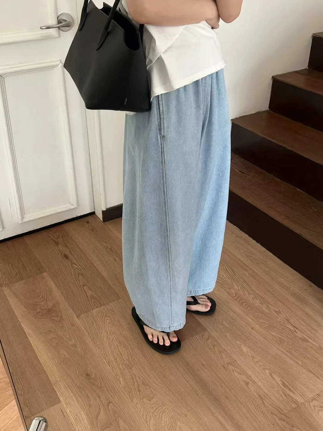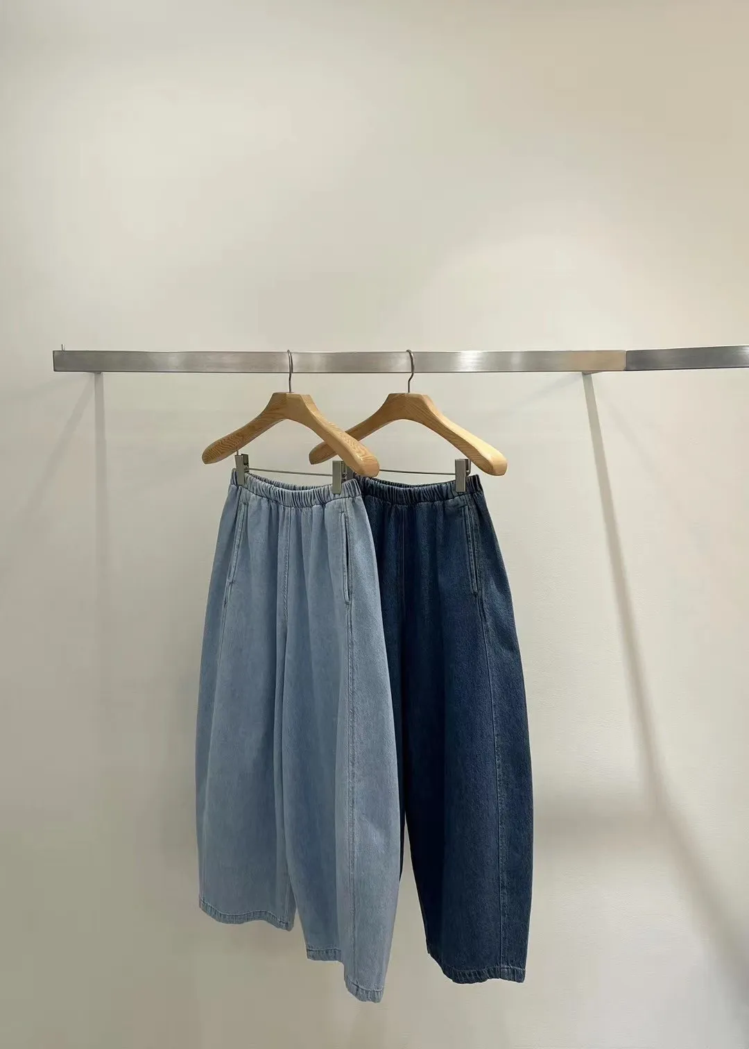 JY017寬寬氣球腰抽繩牛仔長褲 淺藍 深藍 官網價$1480 線上價$1450
