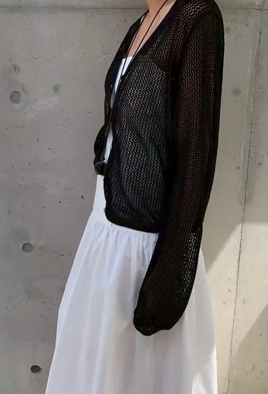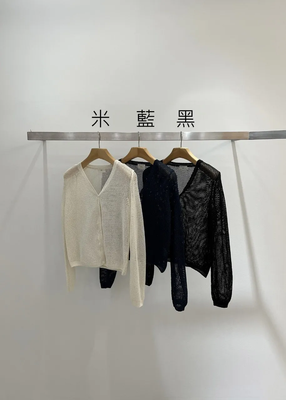 JY022針織透光長袖上衣 米 藍 黑 官網價$1110 線上價$1080
