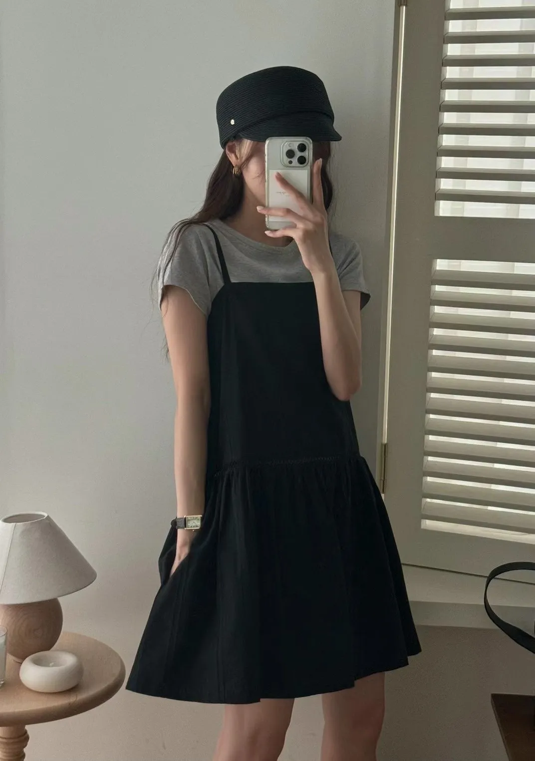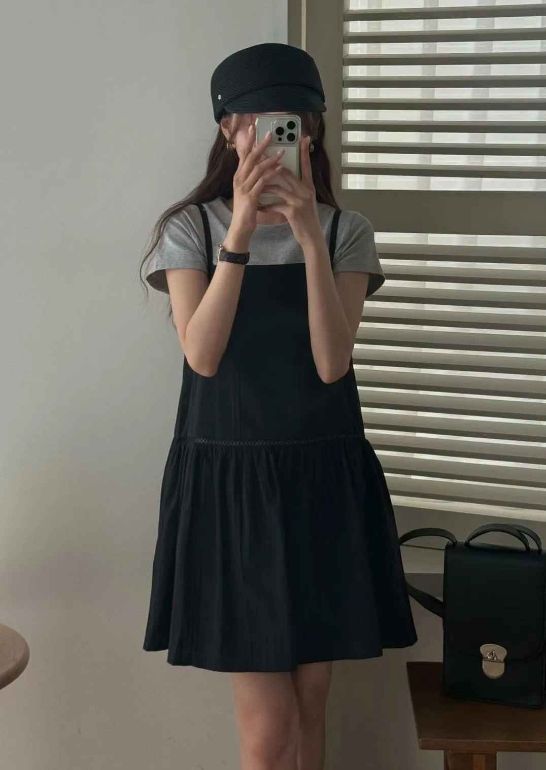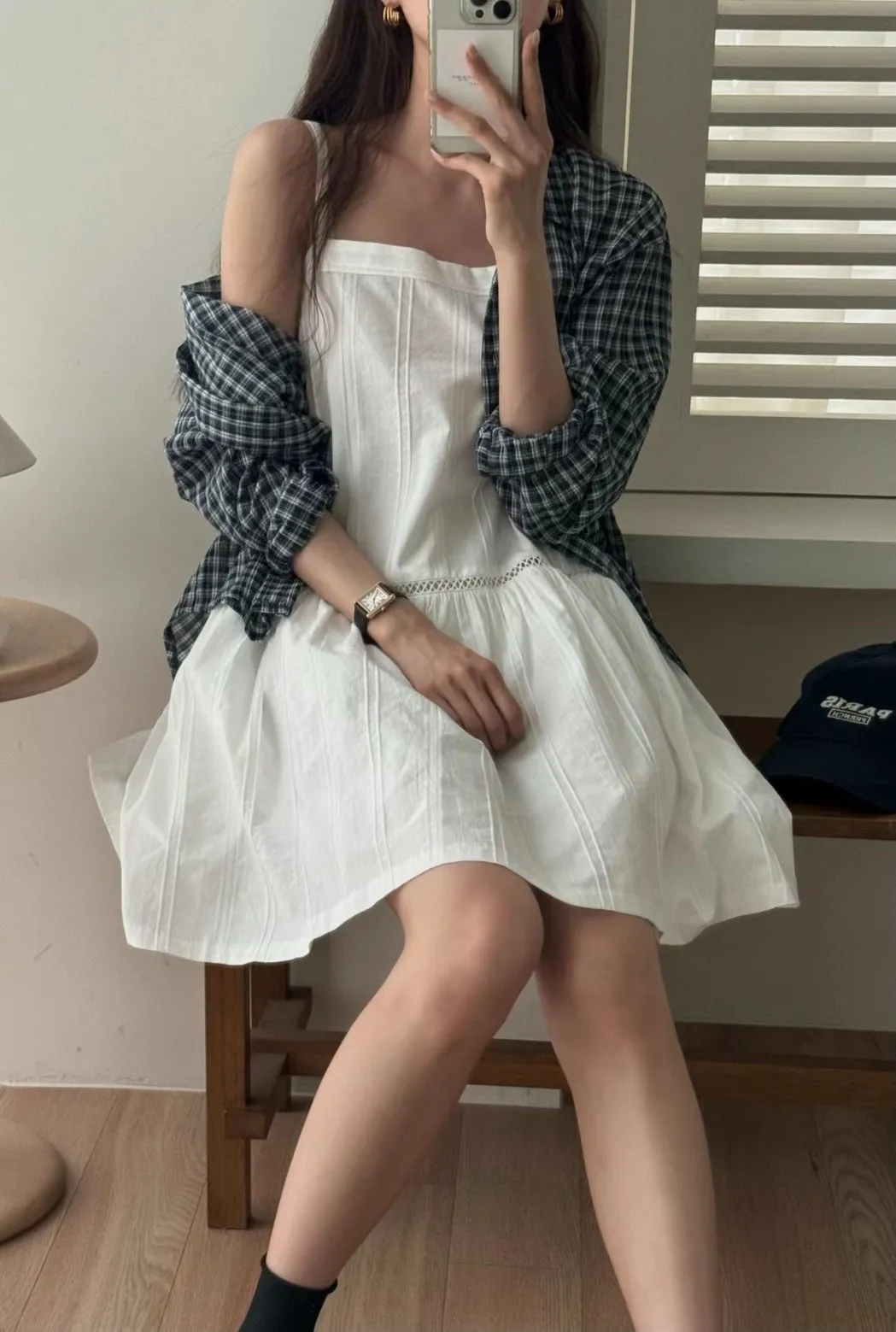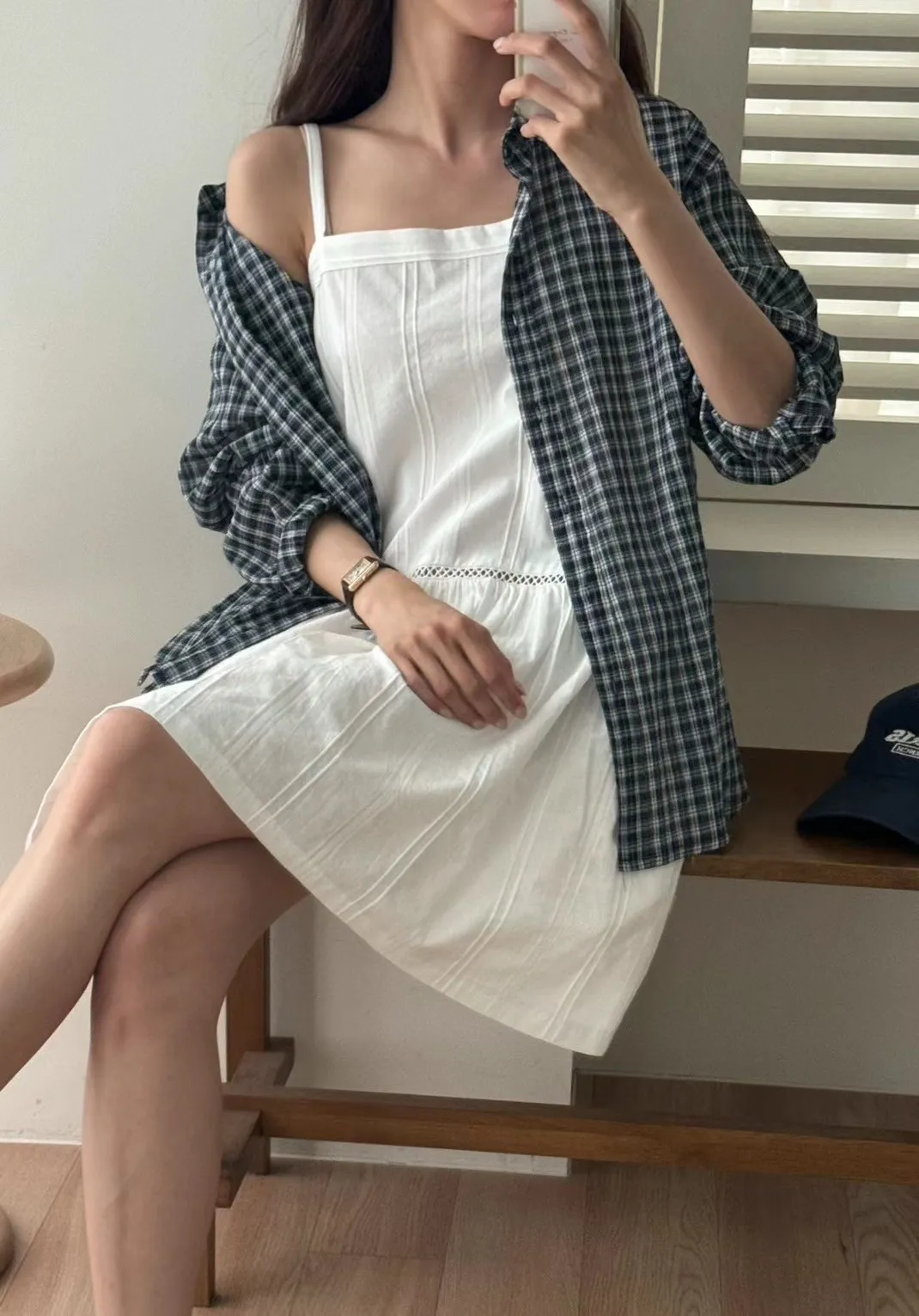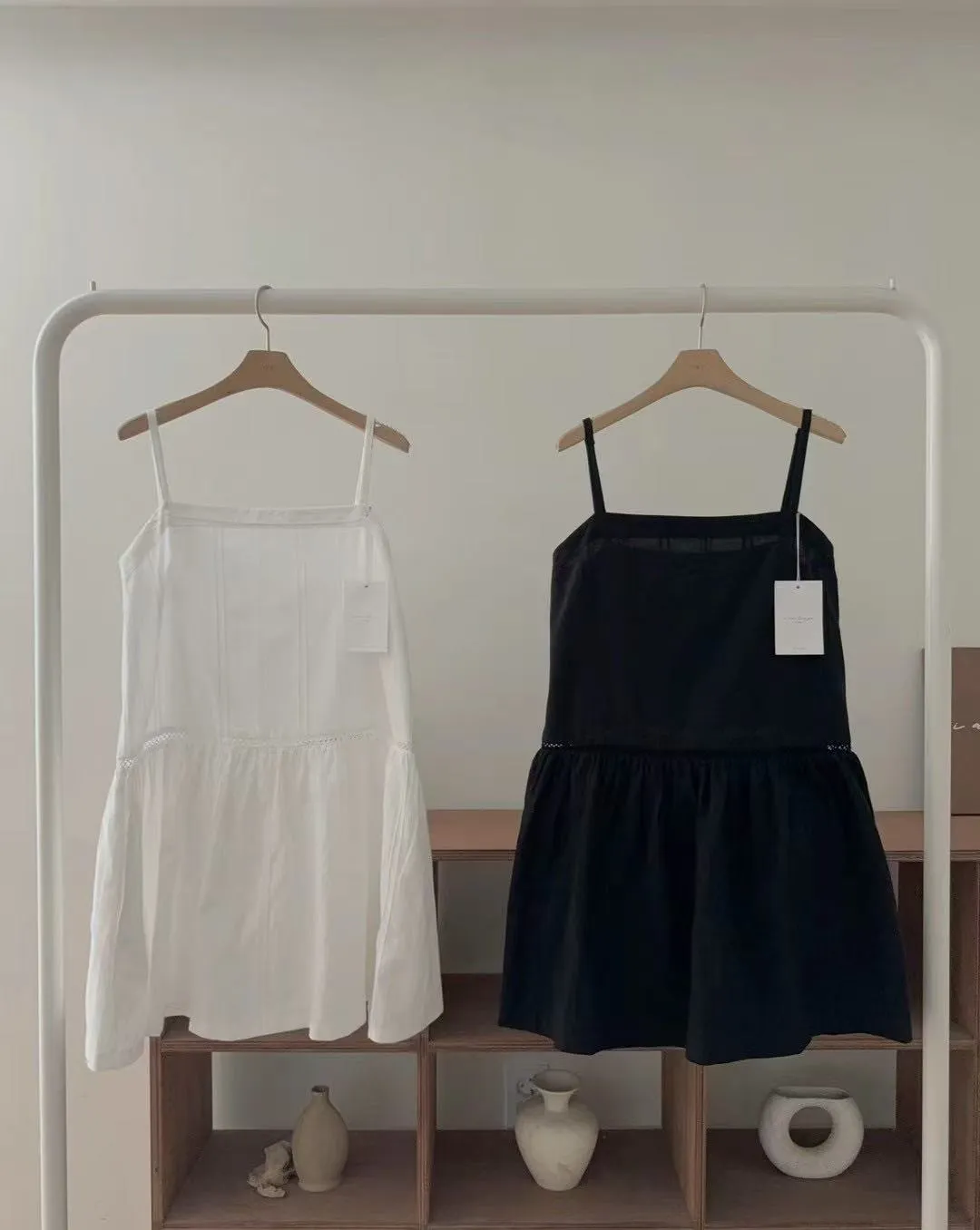 棉 薄款舒適透氣 腰簍空菱格蕾絲 肩帶可調 有內裡有口袋 側拉鍊