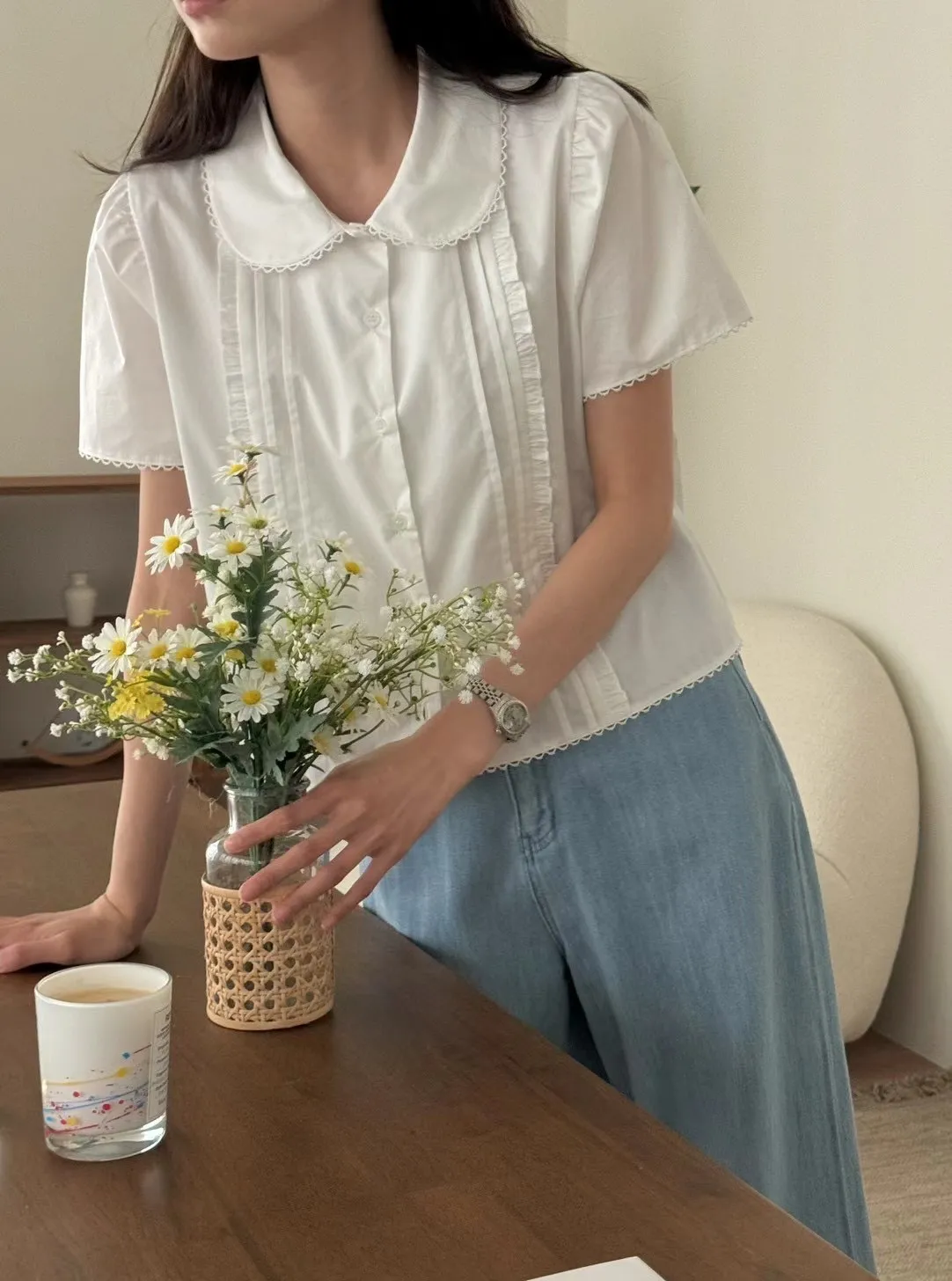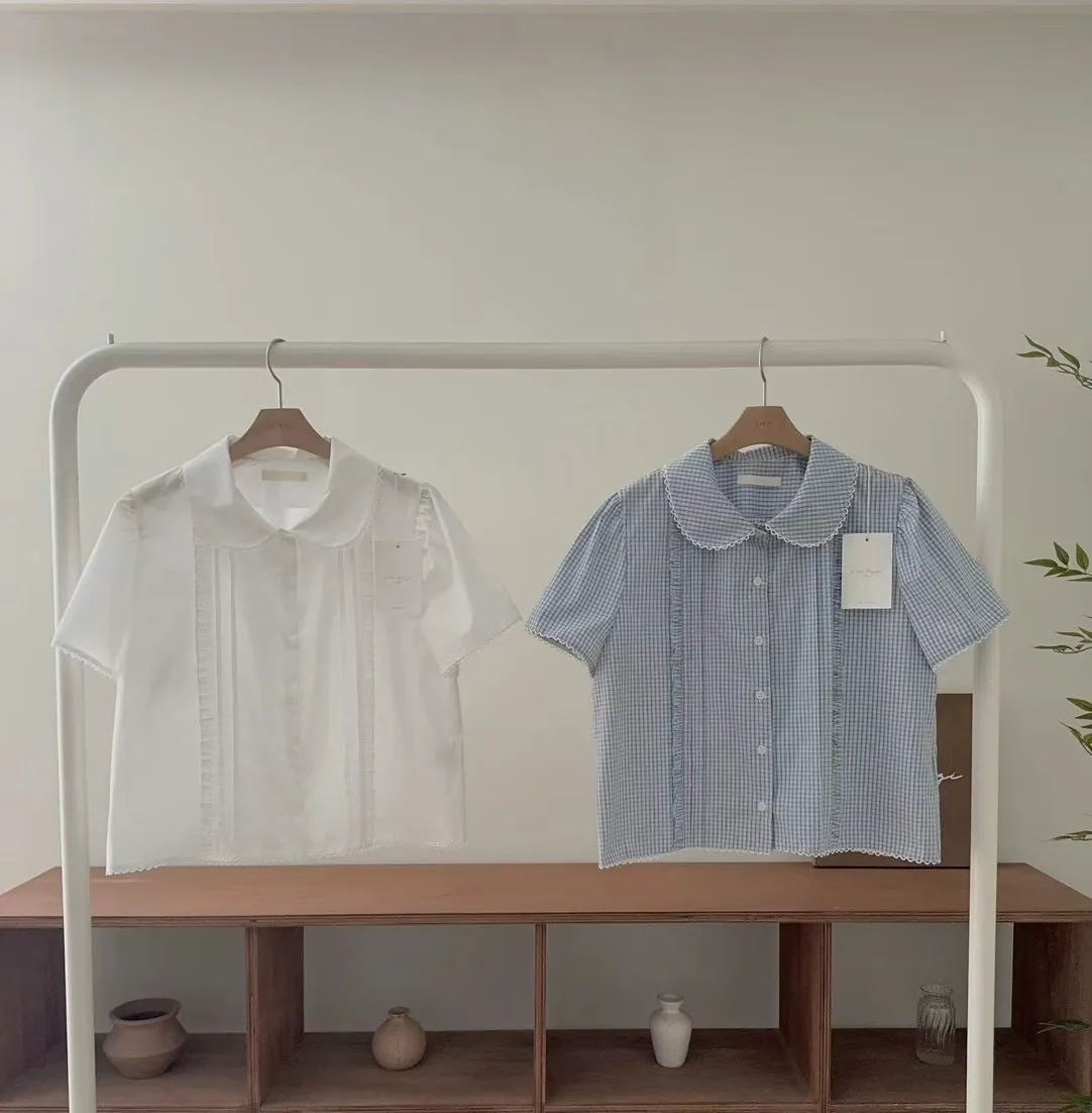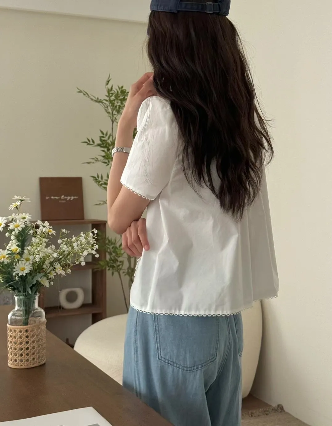 棉,薄款 舒適透氣 排釦穿脫 輕盈不重 蕾絲領口袖口下擺滾邊
