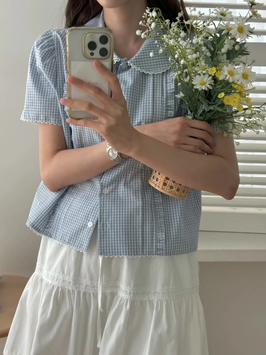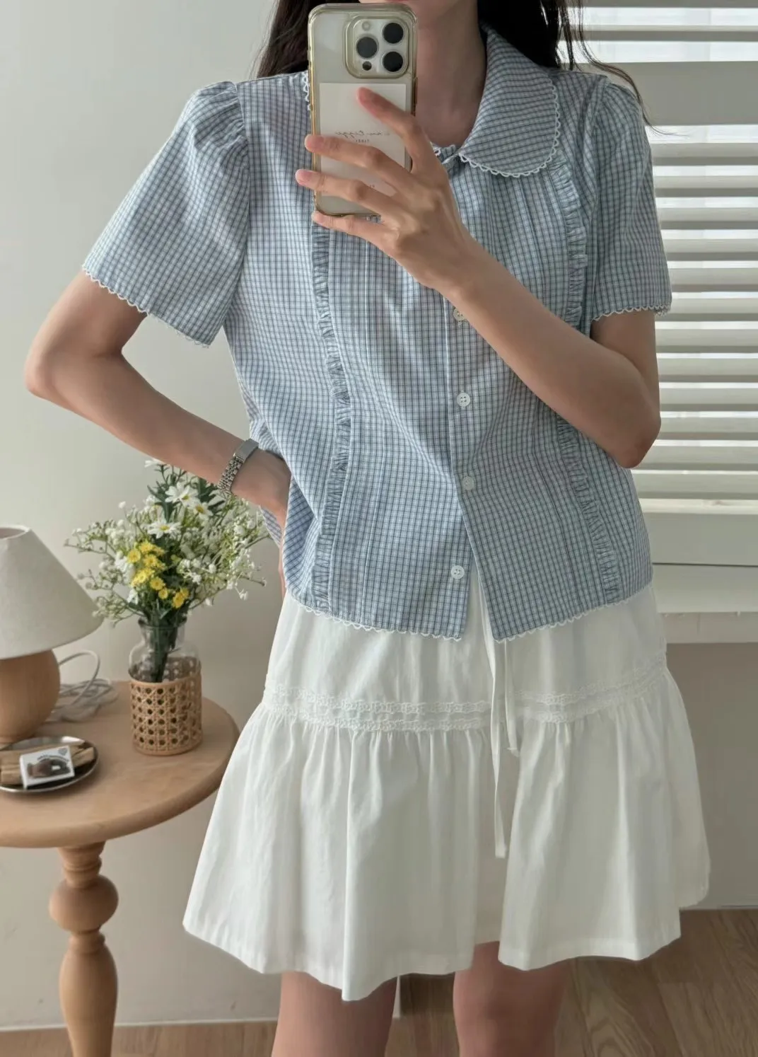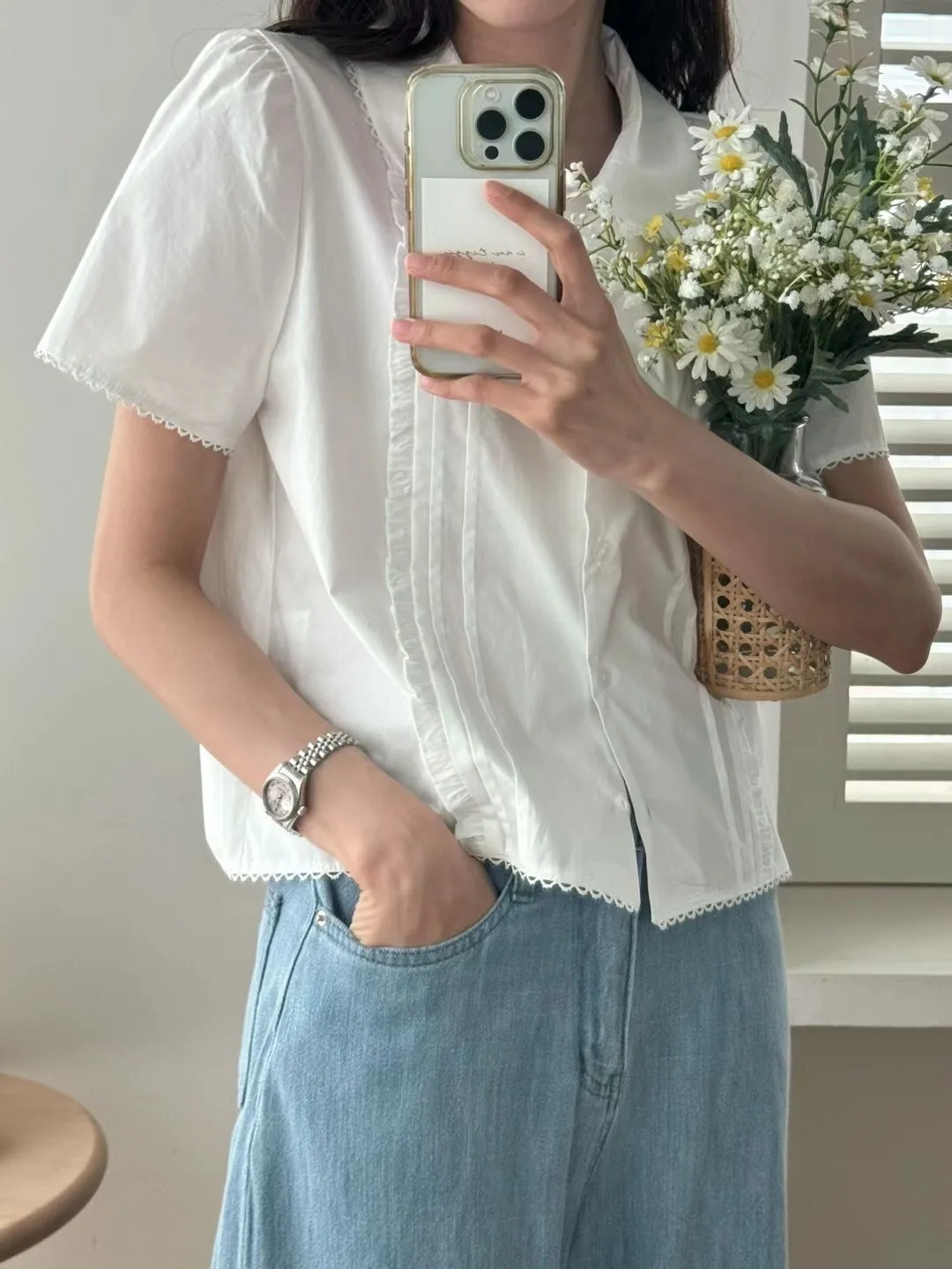 棉,薄款 舒適透氣 排釦穿脫 輕盈不重 蕾絲領口袖口下擺滾邊