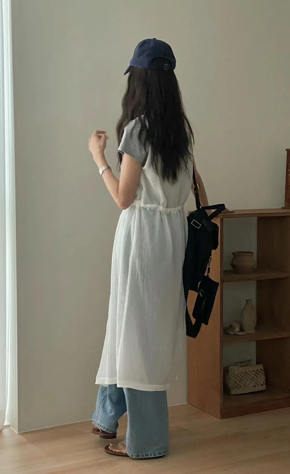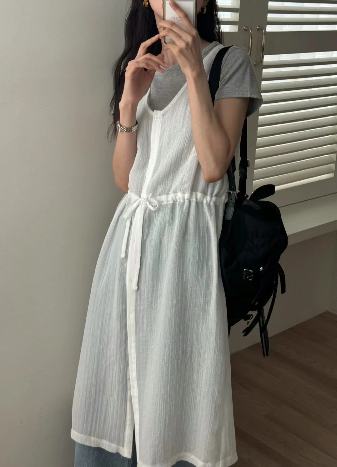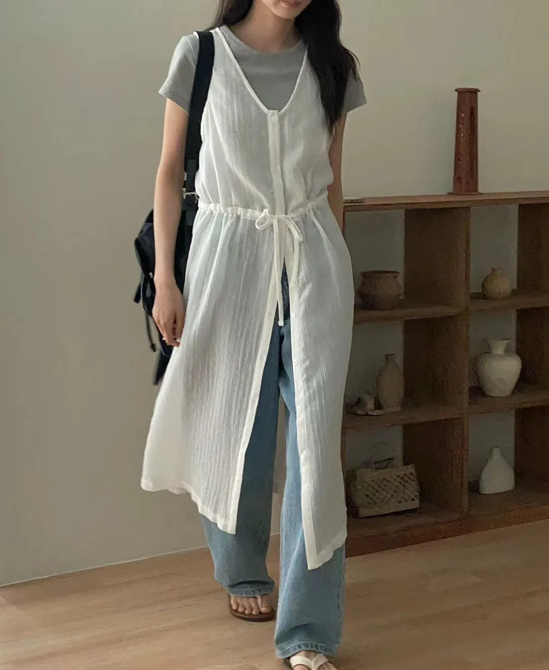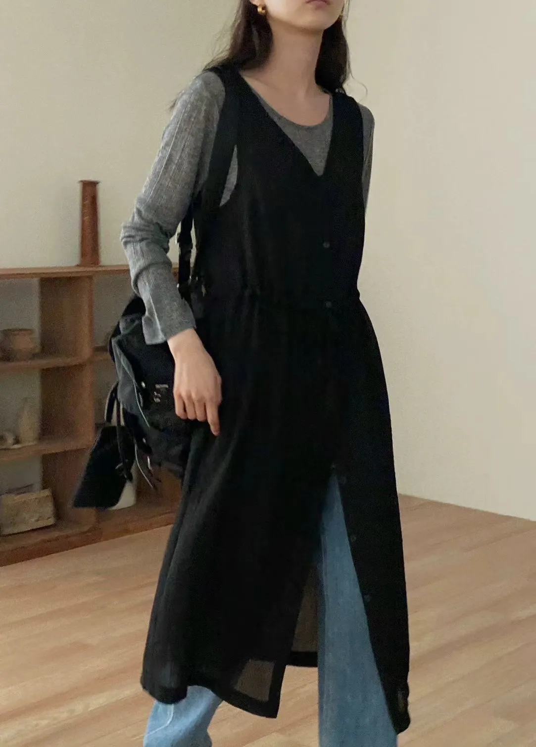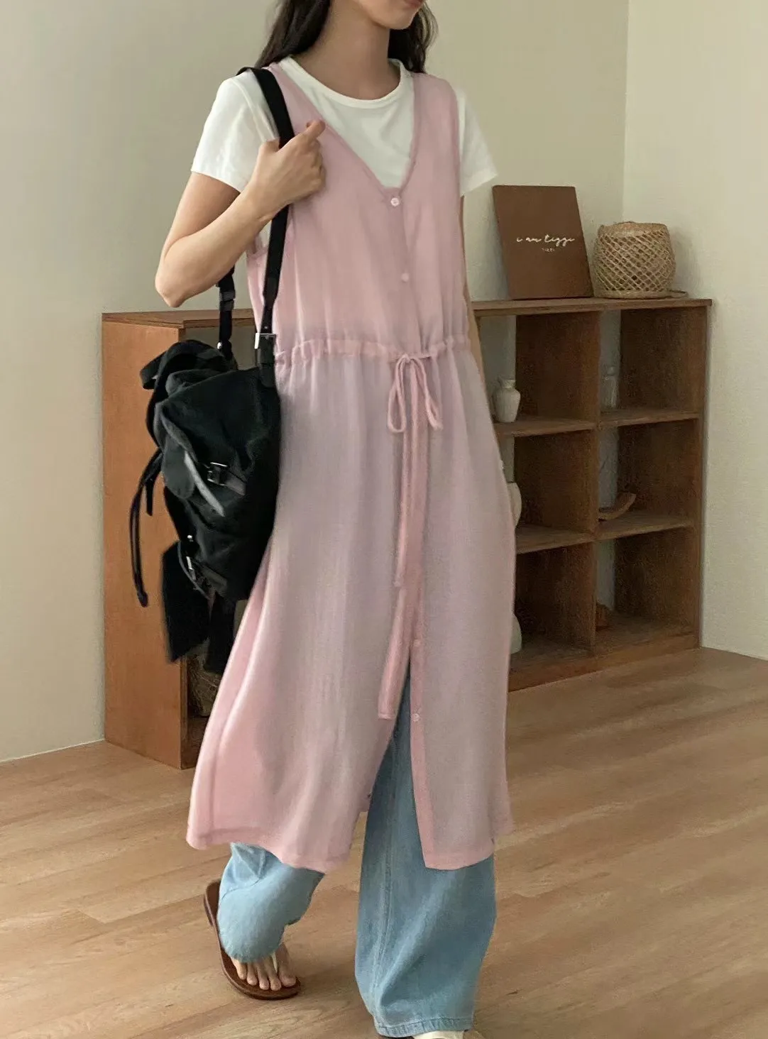 聚酯 推薦款 柔軟舒適 細緻紋理薄款 透光飄逸 腰收線開叉下擺
