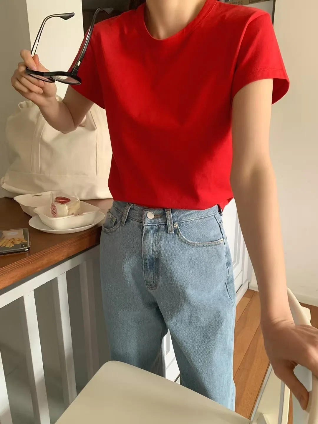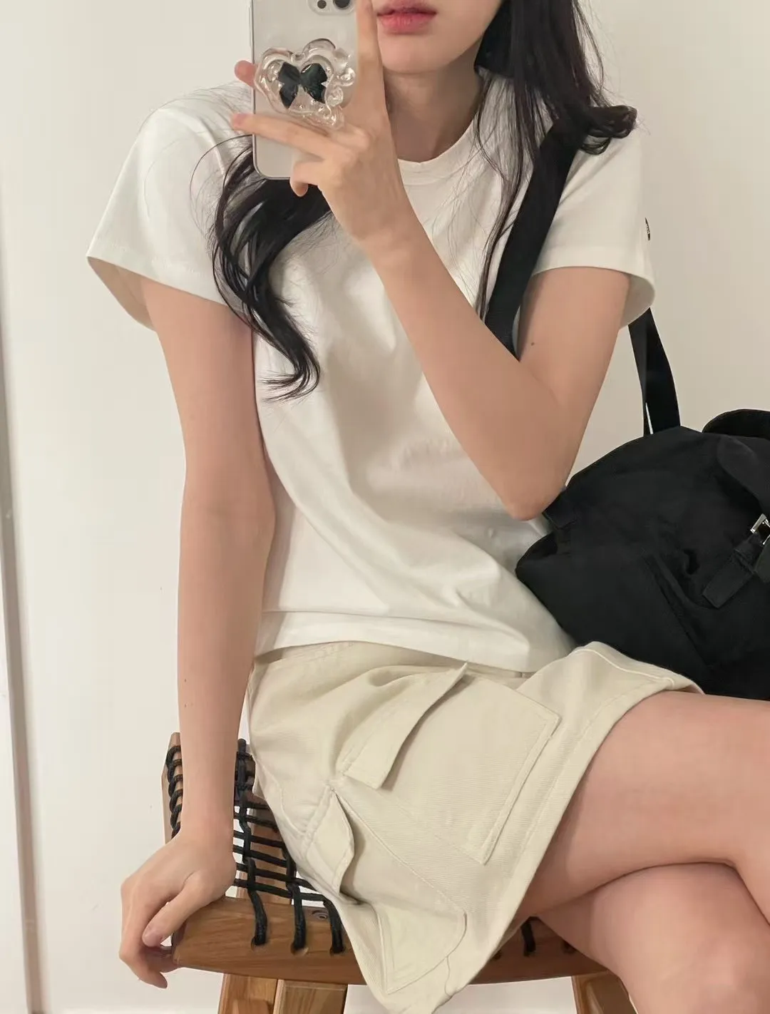 棉 精梳棉 透氣舒適 體感舒服 簡單好看 微短版好比例 穿到M號