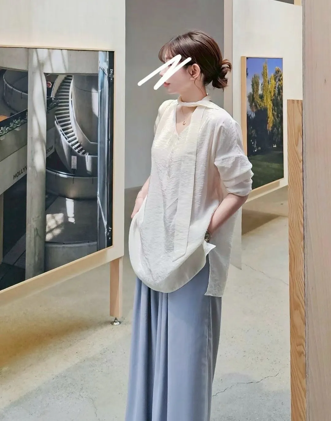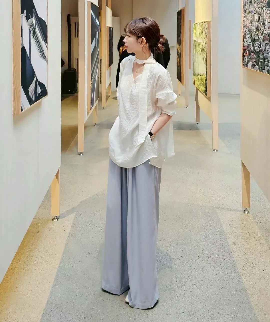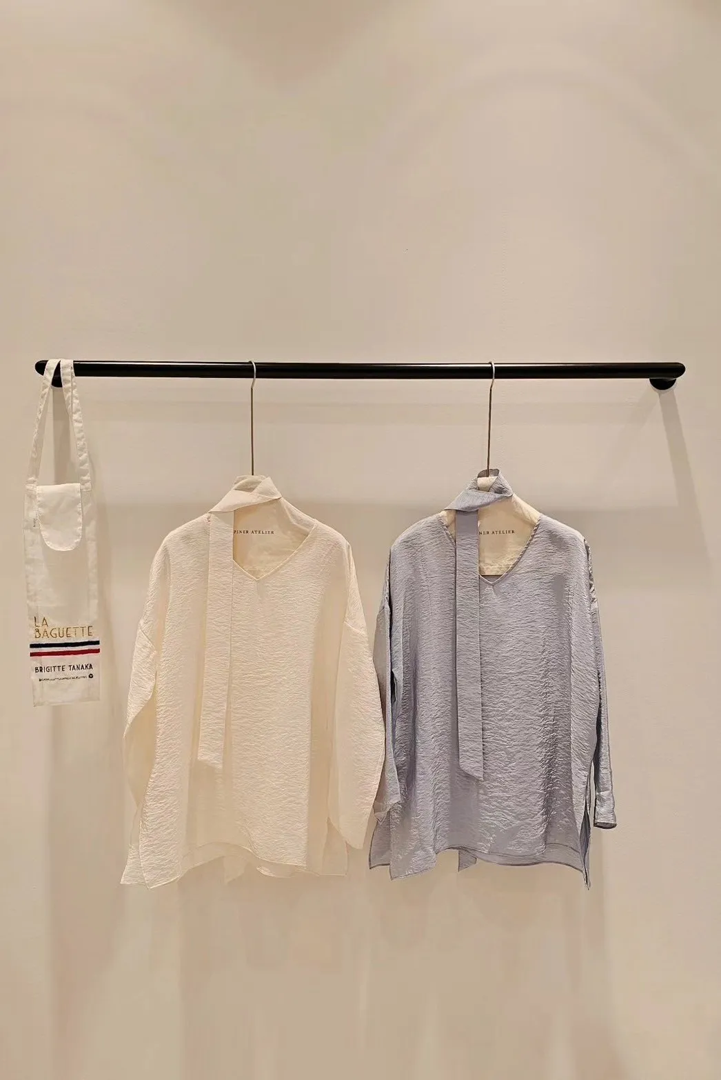 人造絲+尼龍 簡約溫柔 俐落V領 微微細褶面料 仙女光澤感