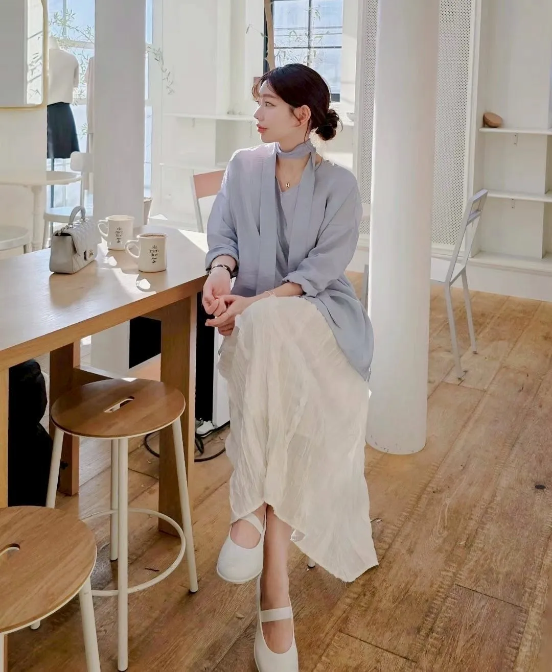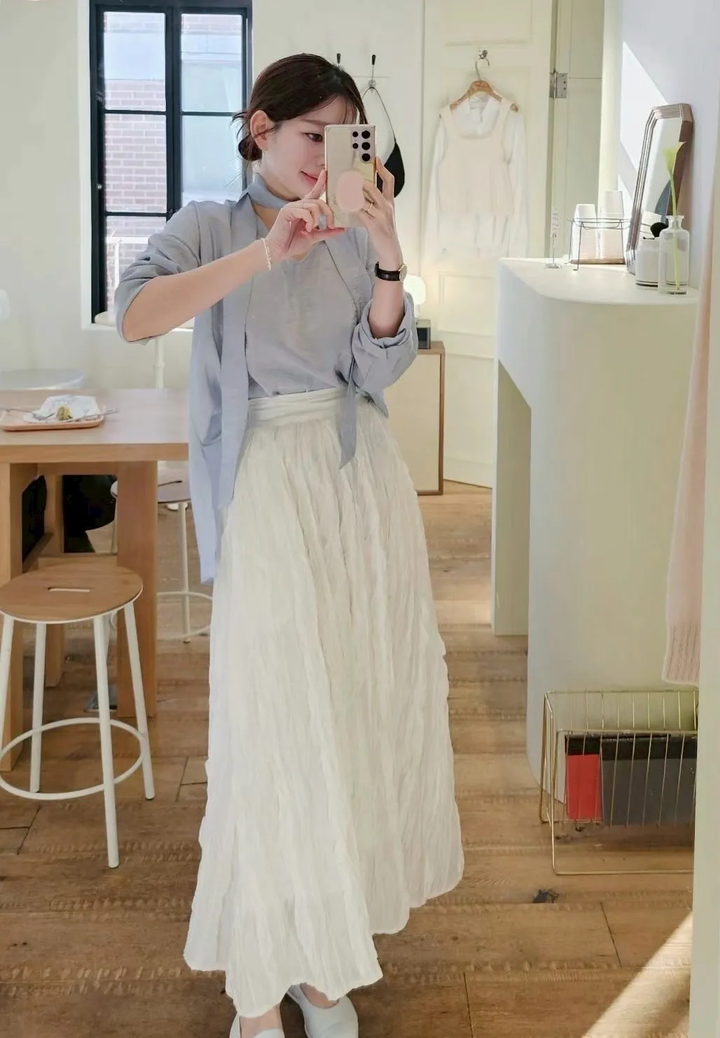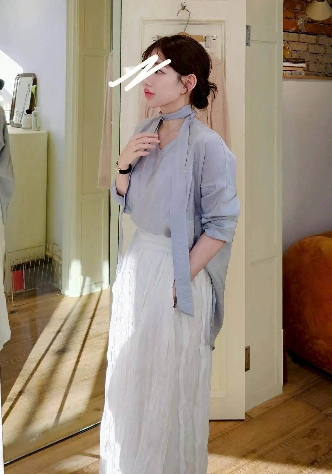 人造絲+尼龍 簡約溫柔 俐落V領 微微細褶面料 仙女光澤感