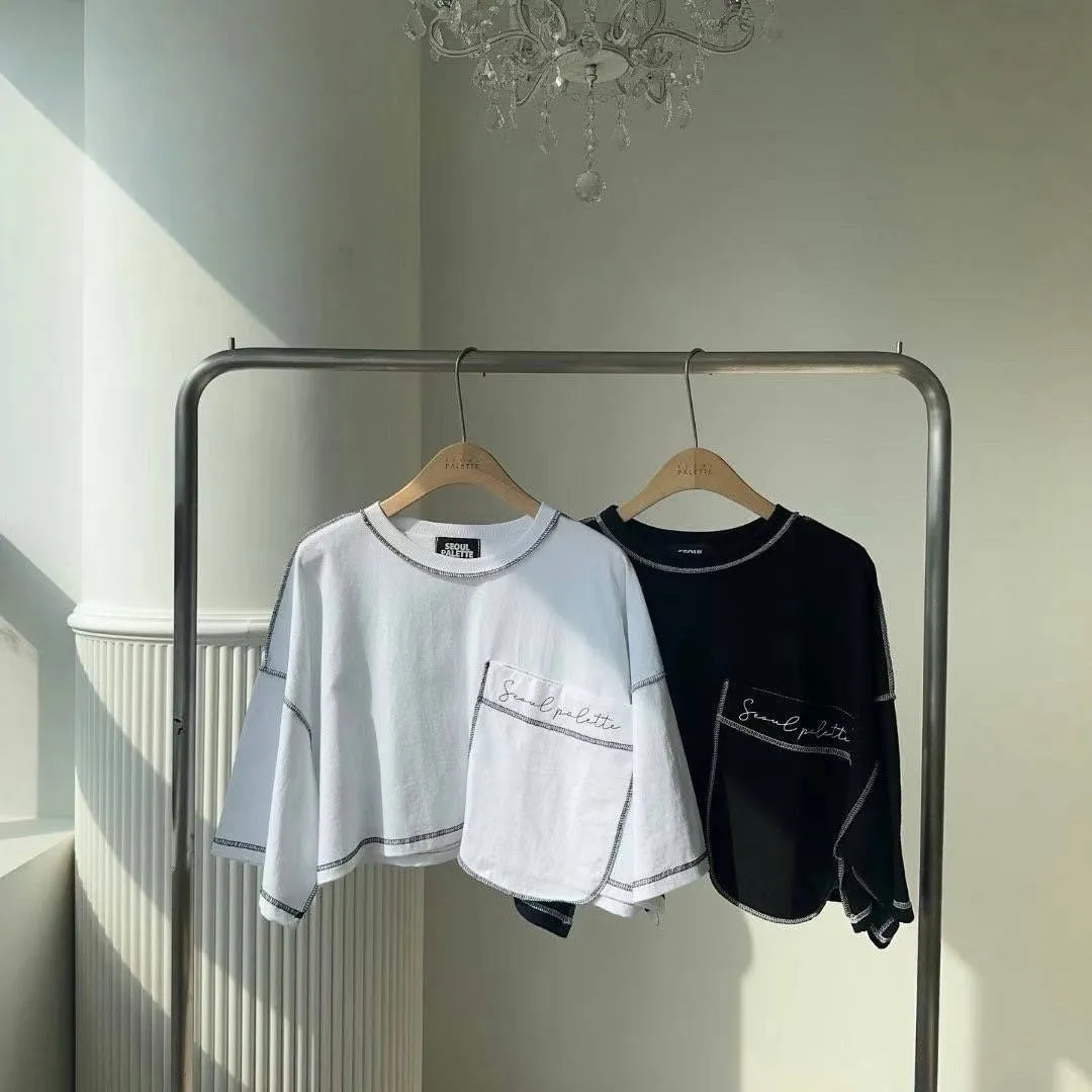 棉+聚酯,不對稱下擺 立體車線 潮流超大口袋 短版好比例