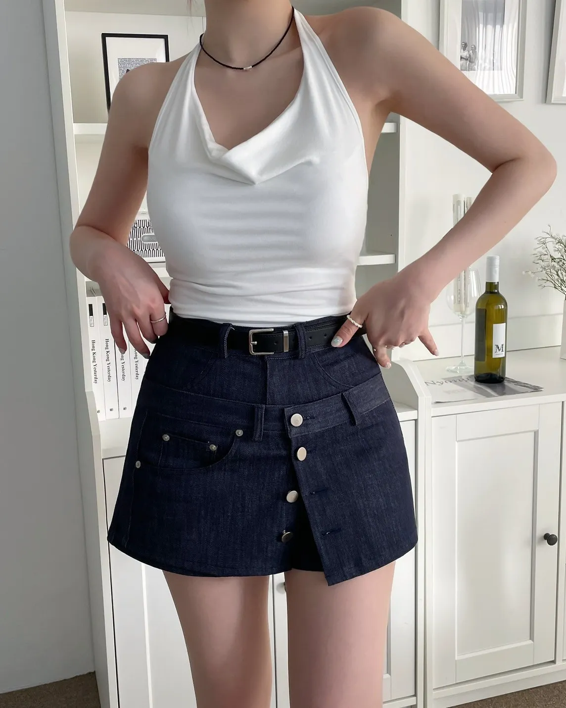棉,薄款斜紋棉 有彈性 雙層面料 是褲裙 車線包邊 有口袋