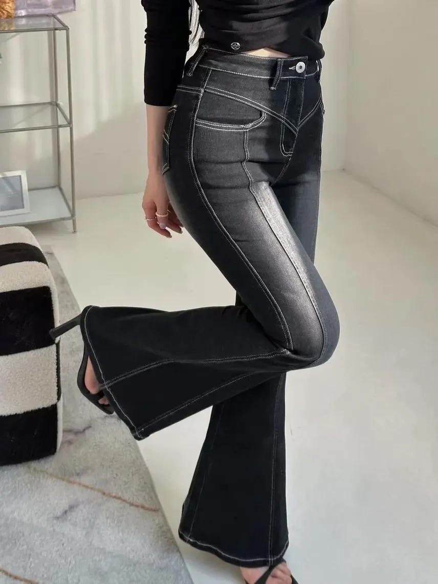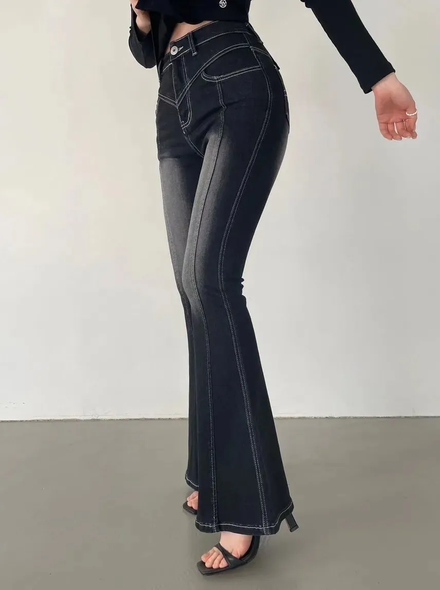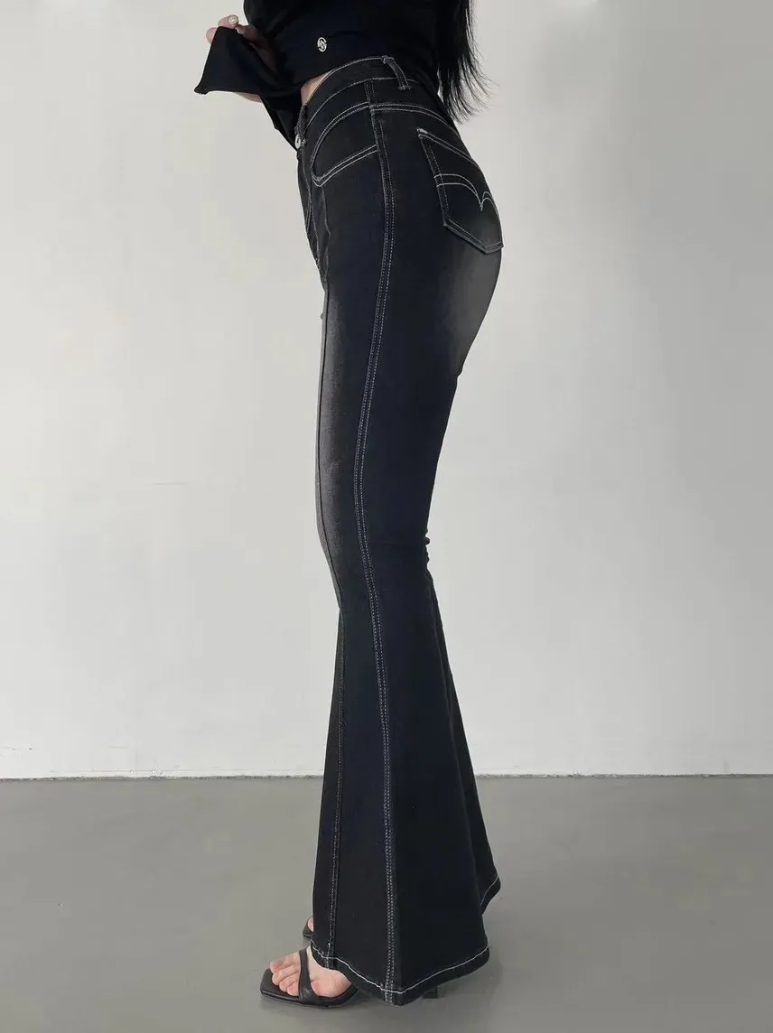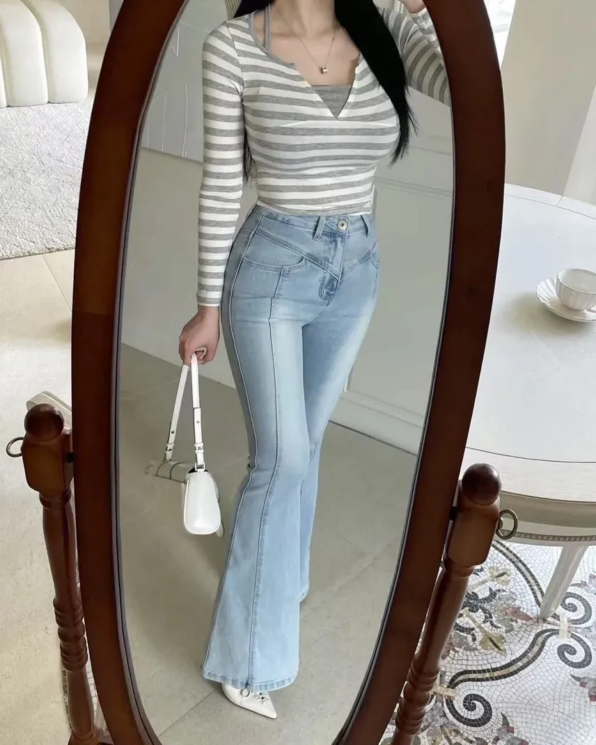 棉 釦鍊穿脫 胯寬內襯設計可拆 水洗刷色 有彈性 細腿喇叭