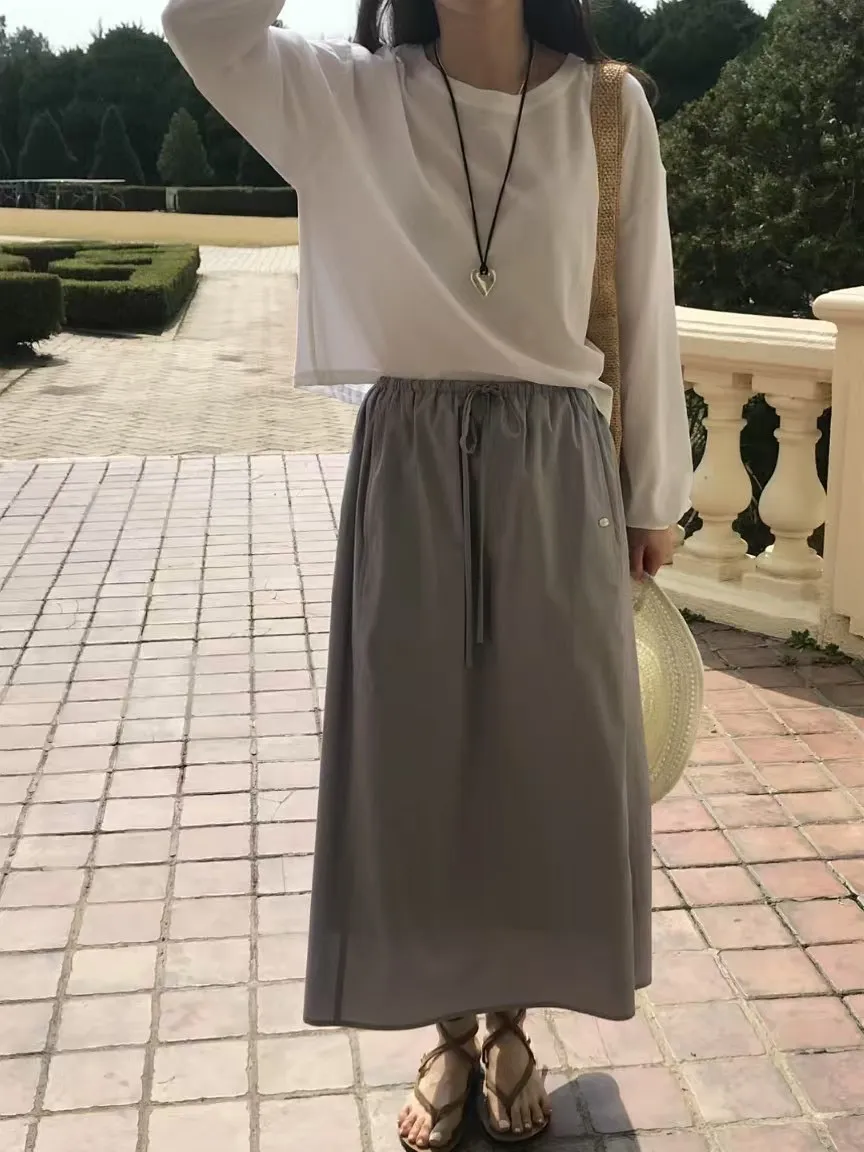 KB206質感腰綁帶品牌標裙子 白 米 淺灰 深灰 官網價$1330 線上價$1300