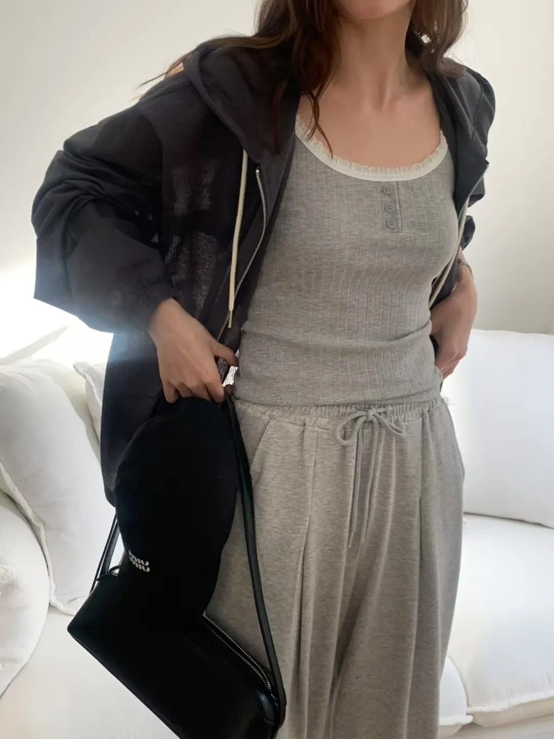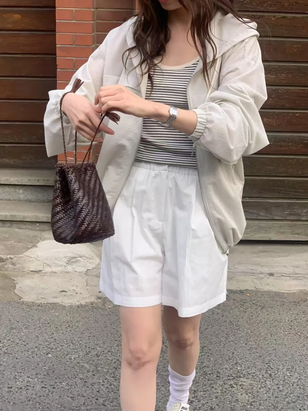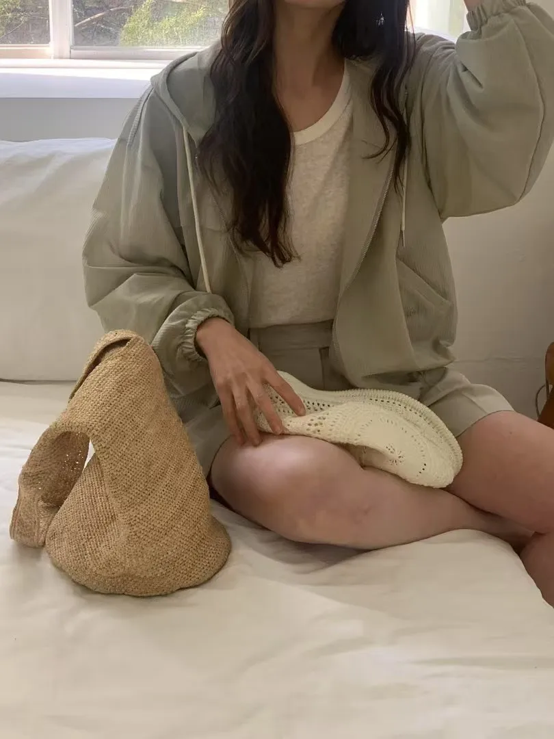 棉+尼龍 觸感舒適 輕盈薄款 實體像品牌感高級 手袖鬆緊 有口袋