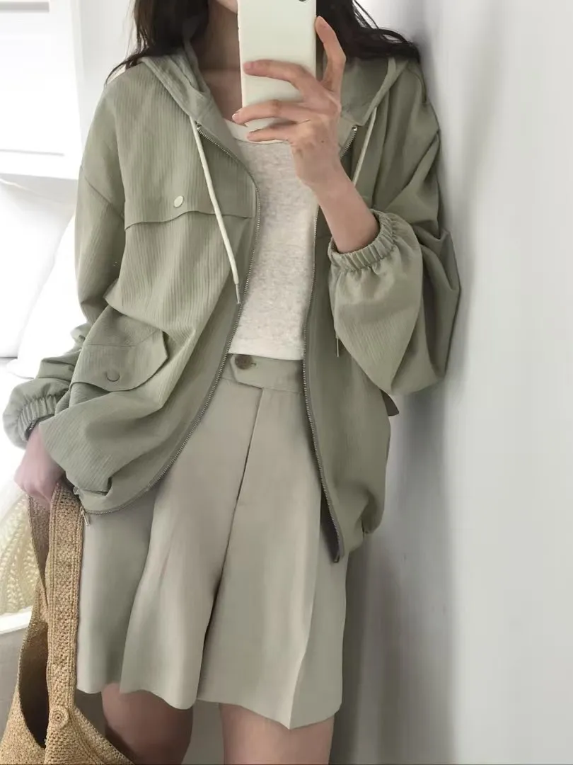 KB214推薦款品牌連帽鬆弛感外套 白 淺米 綠 灰 官網價$1750 線上價$1720