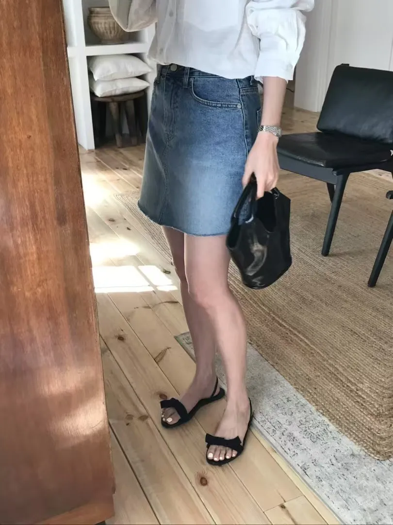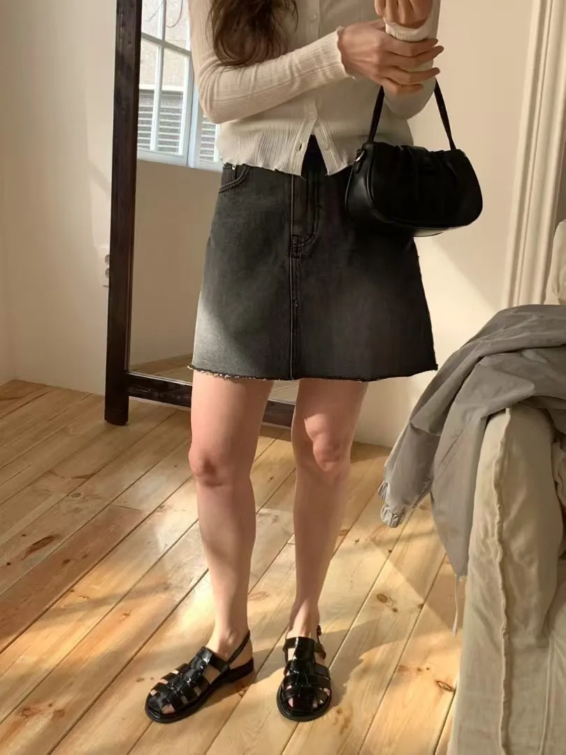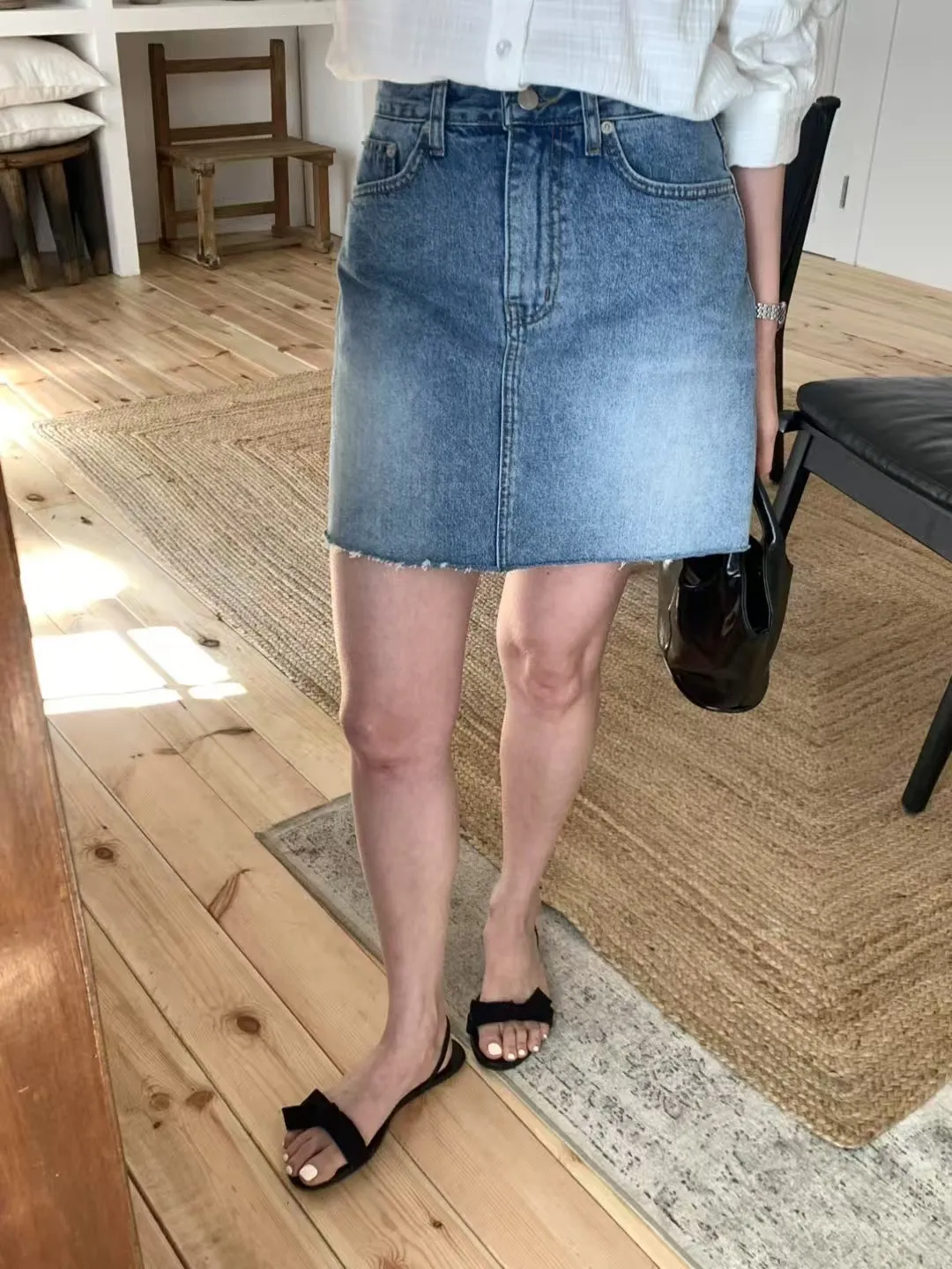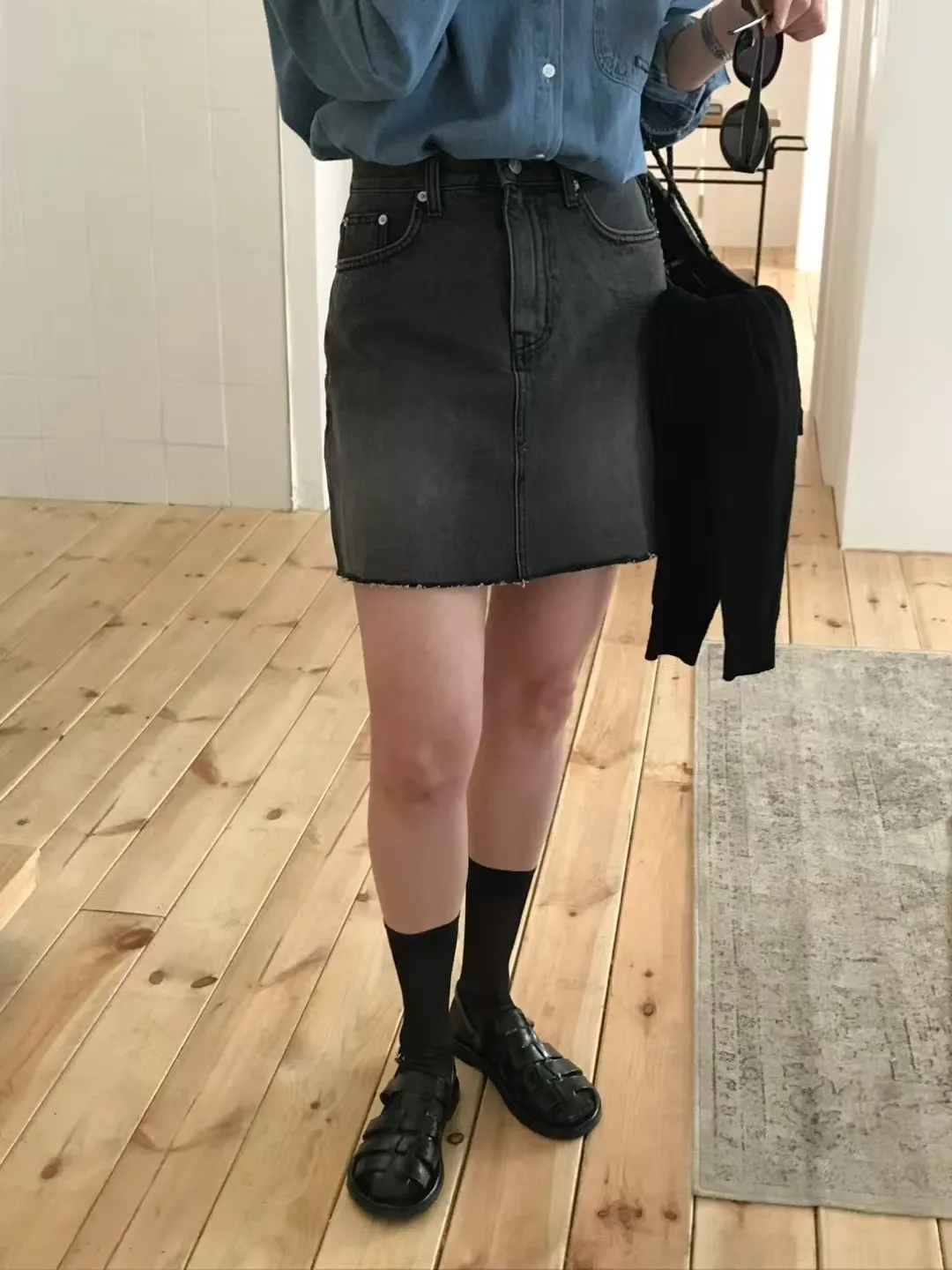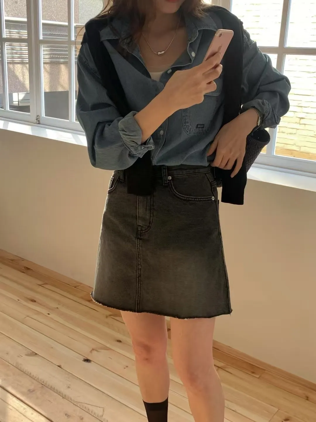 KB217美刷色不收邊牛仔褲裙 藍 灰 S M L 官網價$1150 線上價$1120