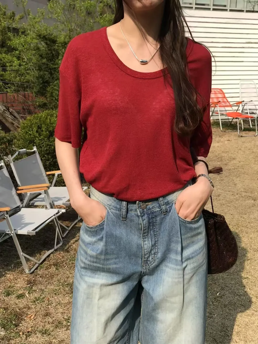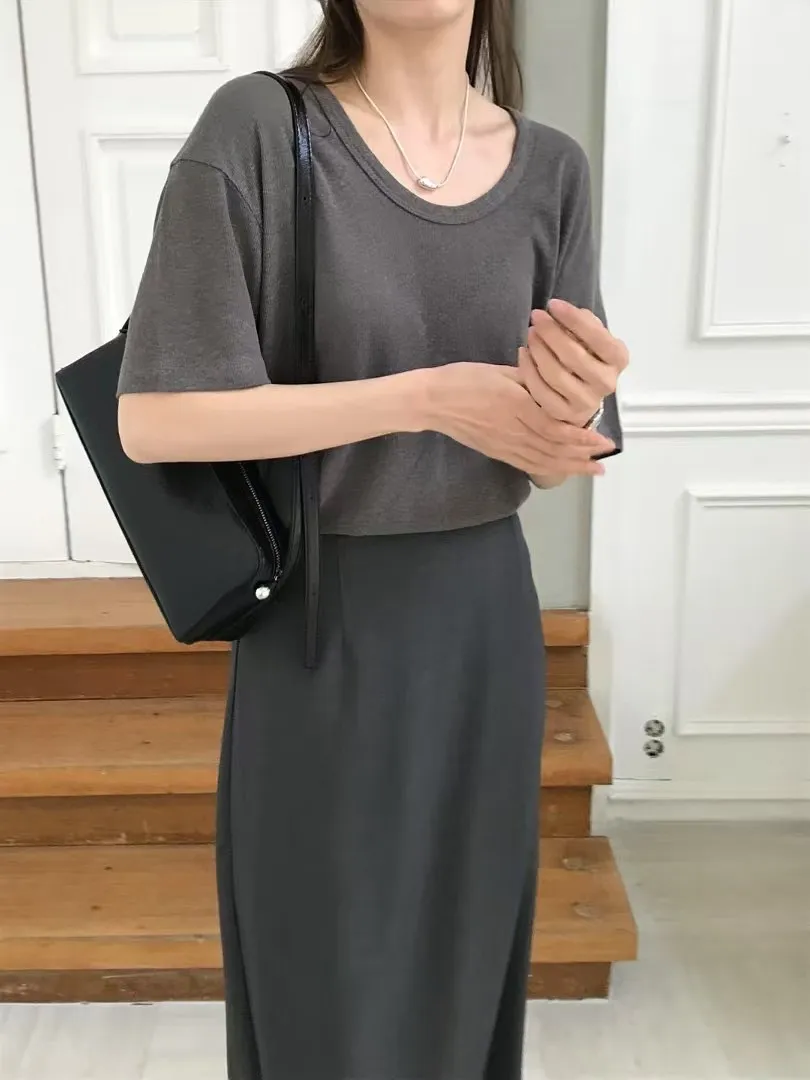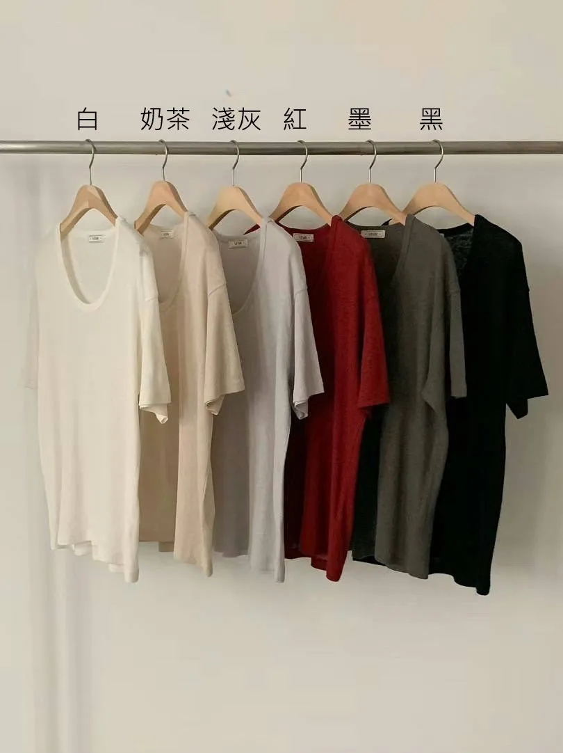 KB219質感寬U領薄款短袖Tshirt 白 墨 紅 黑 奶茶 淺灰 官網價$680 線上價$650