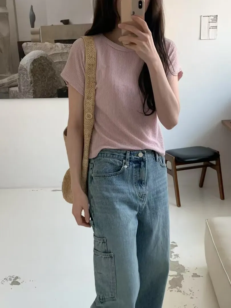 B224質感亞麻短袖Tshirt 米 燕麥 粉 藍 黑 官網價$580 線上價$550