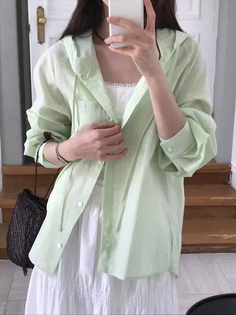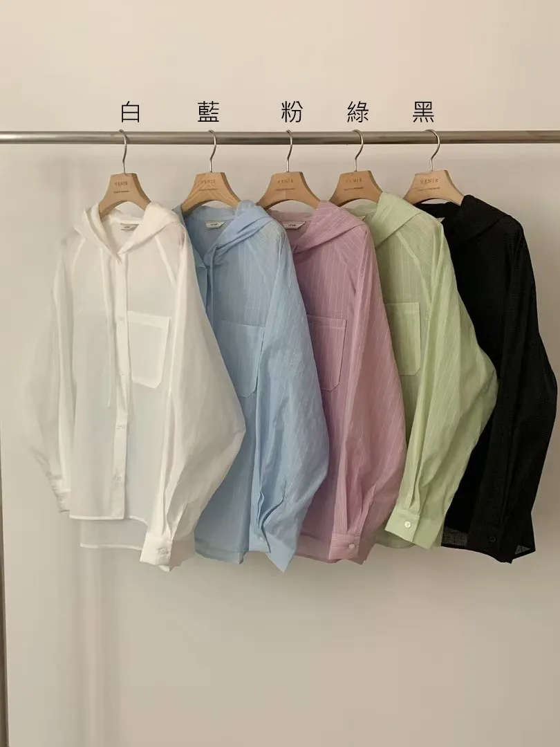 KB226單口袋排釦連帽防曬外套 白 藍 粉 綠 黑 官網價$1290 線上價$1260