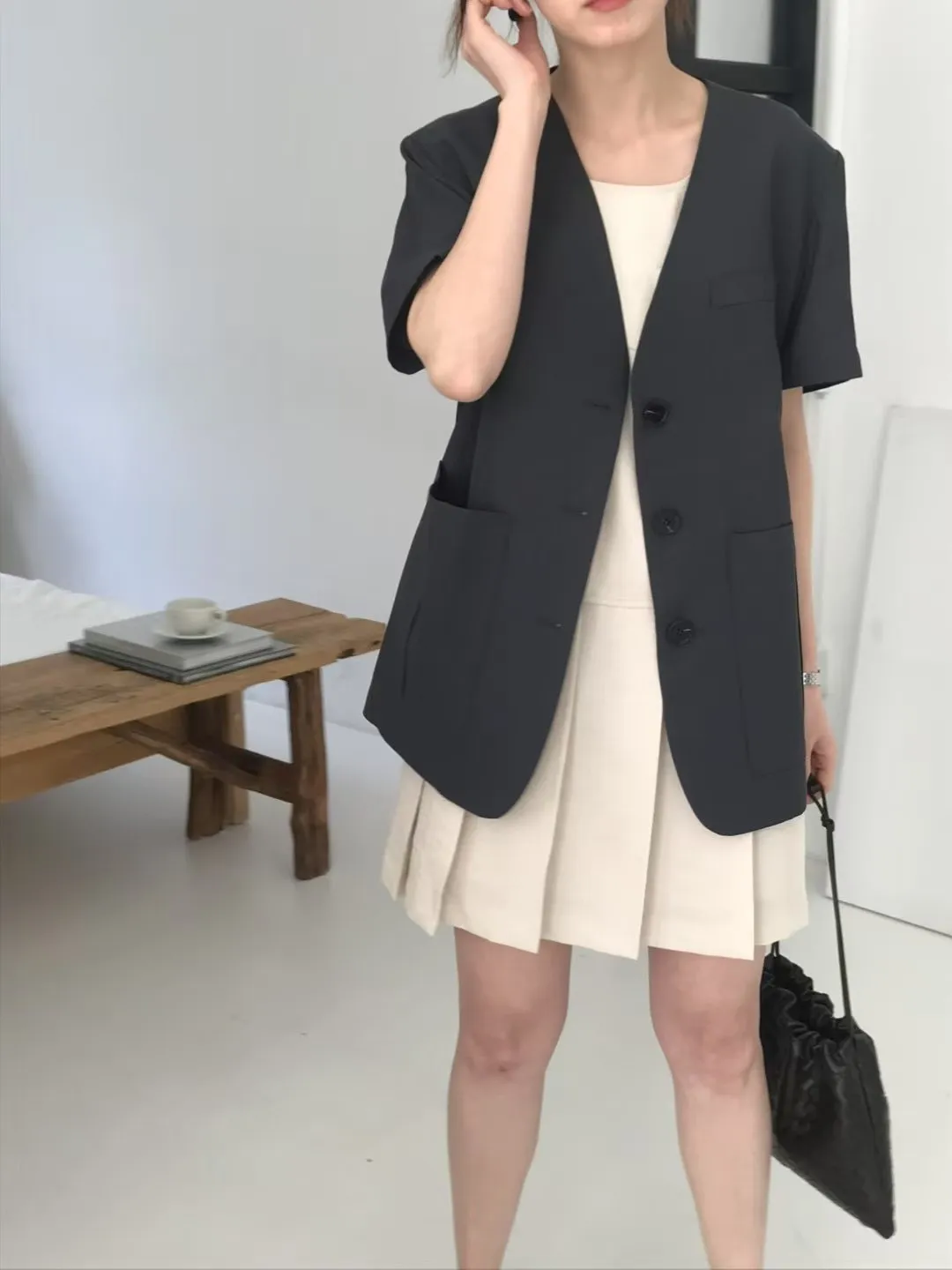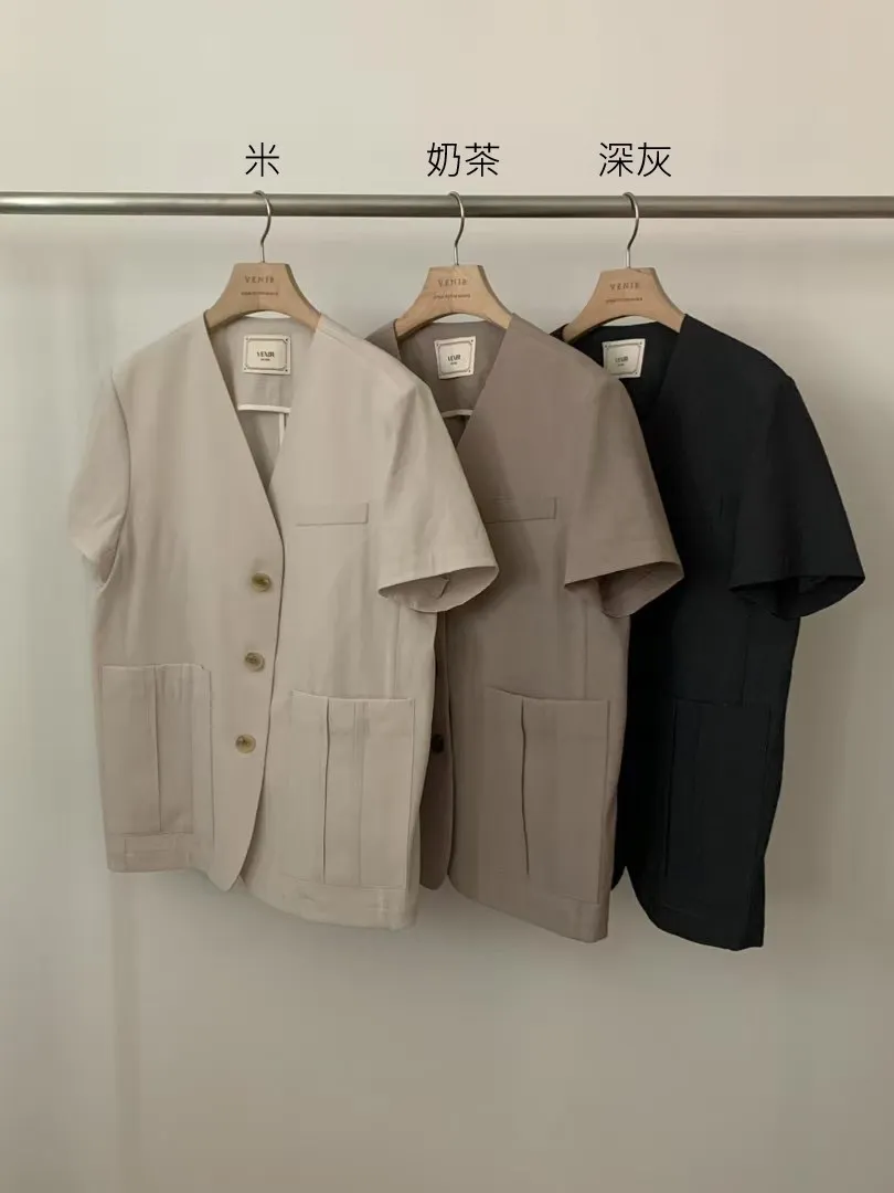 KB227短袖三釦西裝外套 米 奶茶 深灰 官網價$1790 線上價$1760