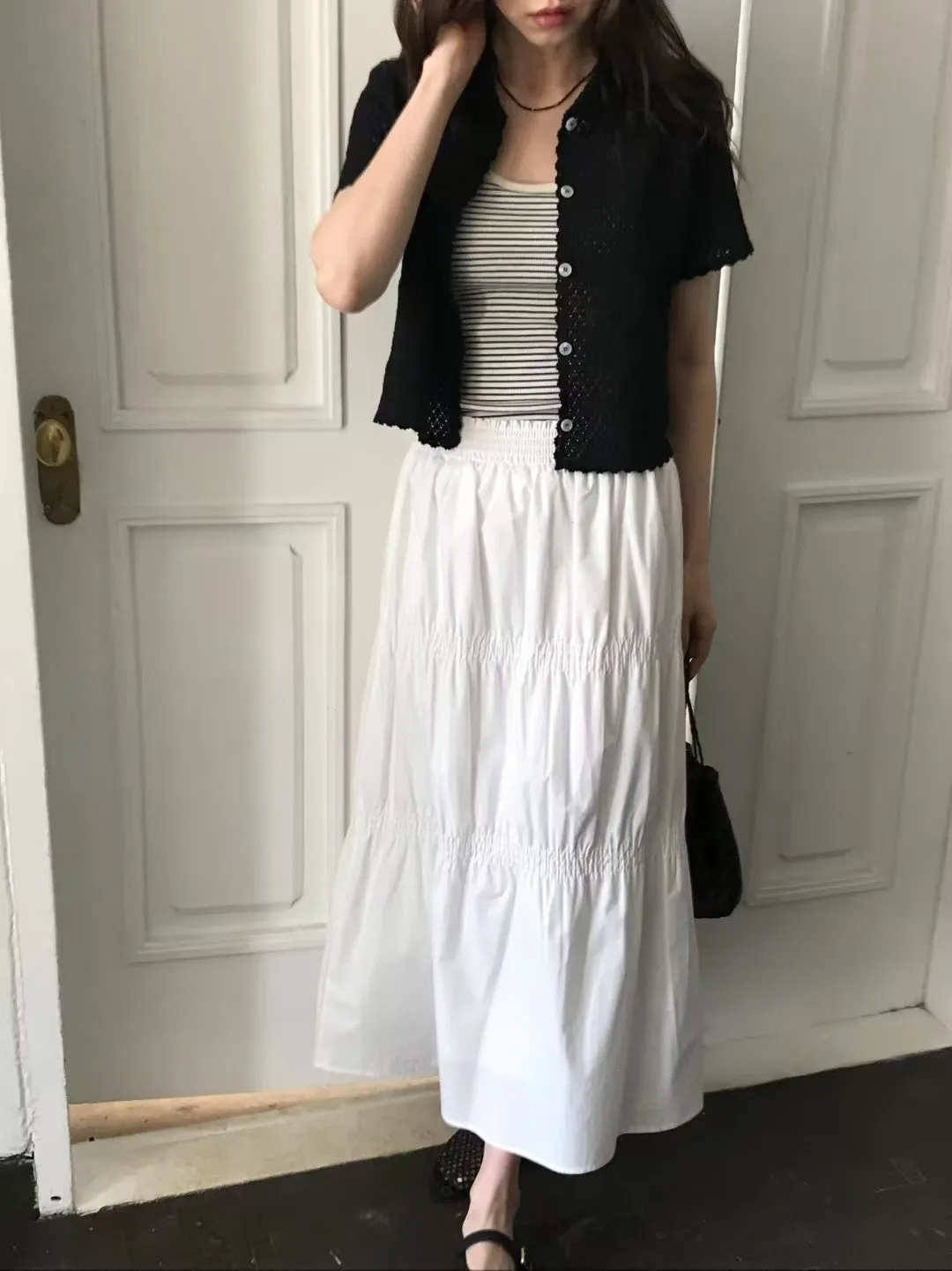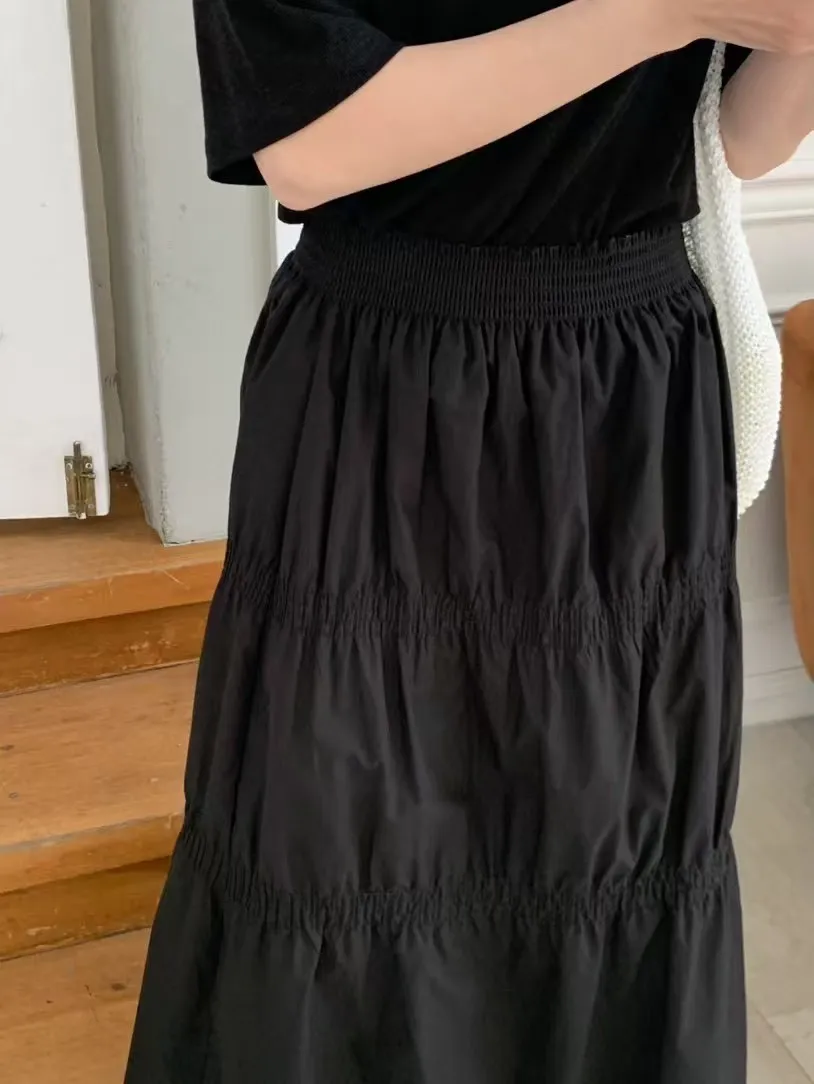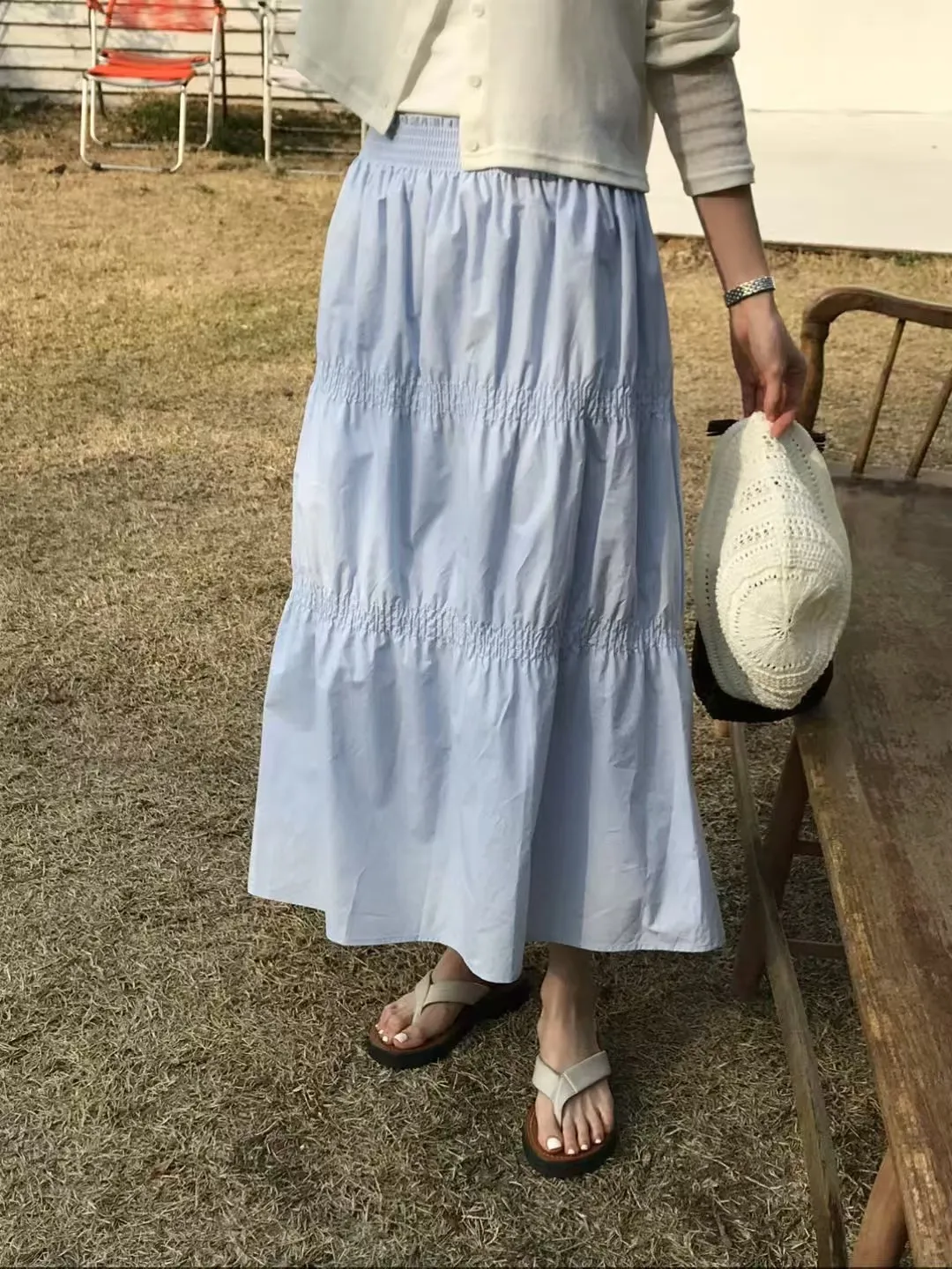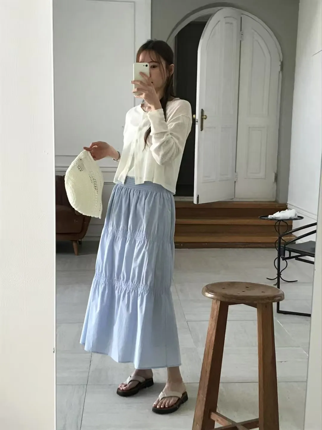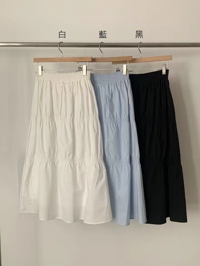 KB228質感百搭蛋糕長裙 白 藍 黑 官網價$1390 線上價$1360