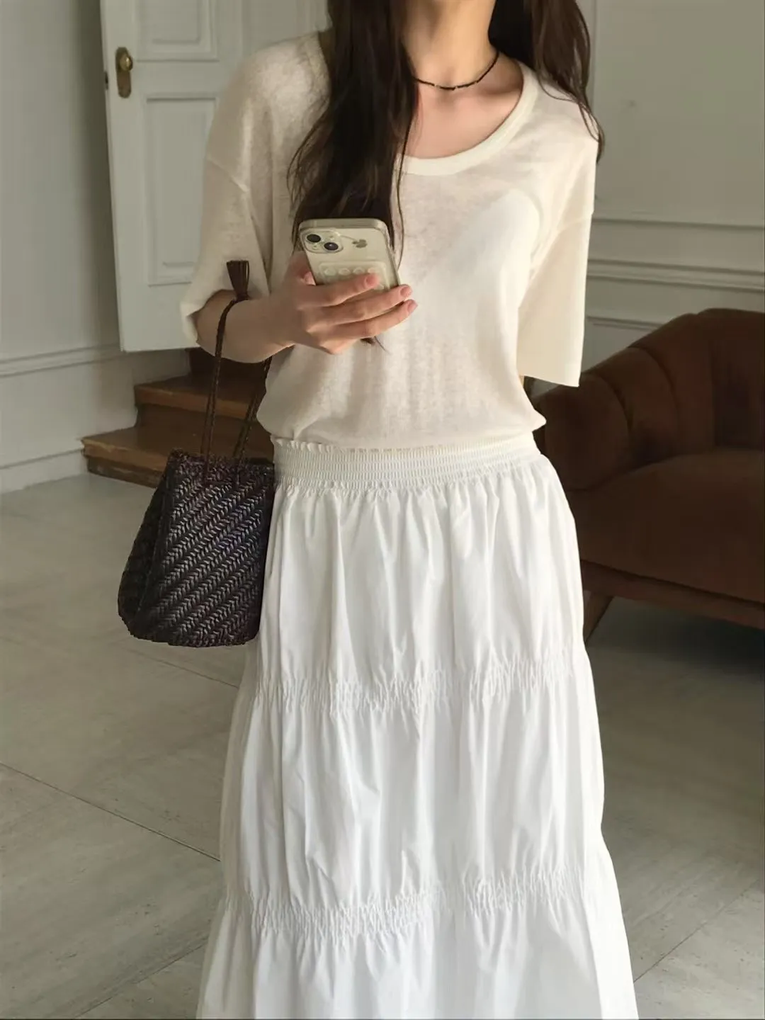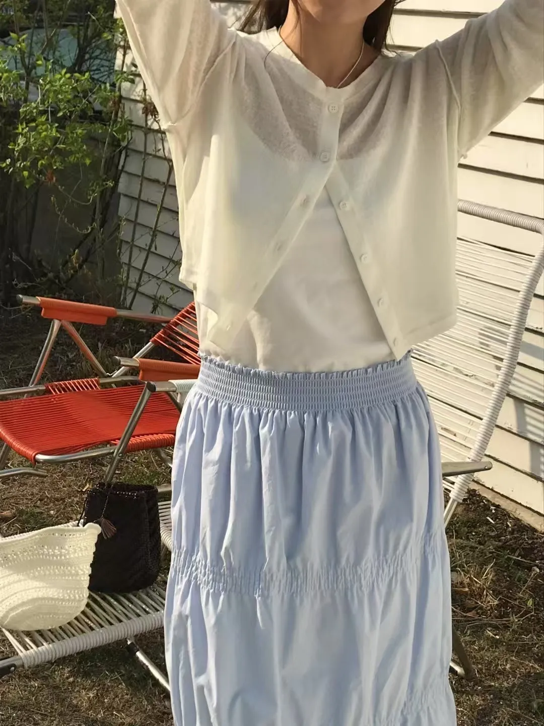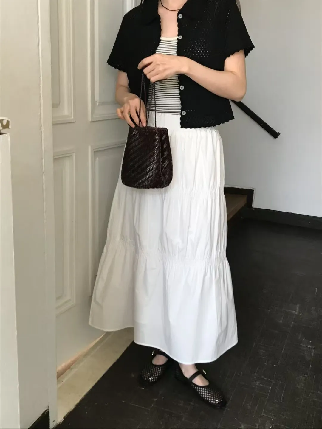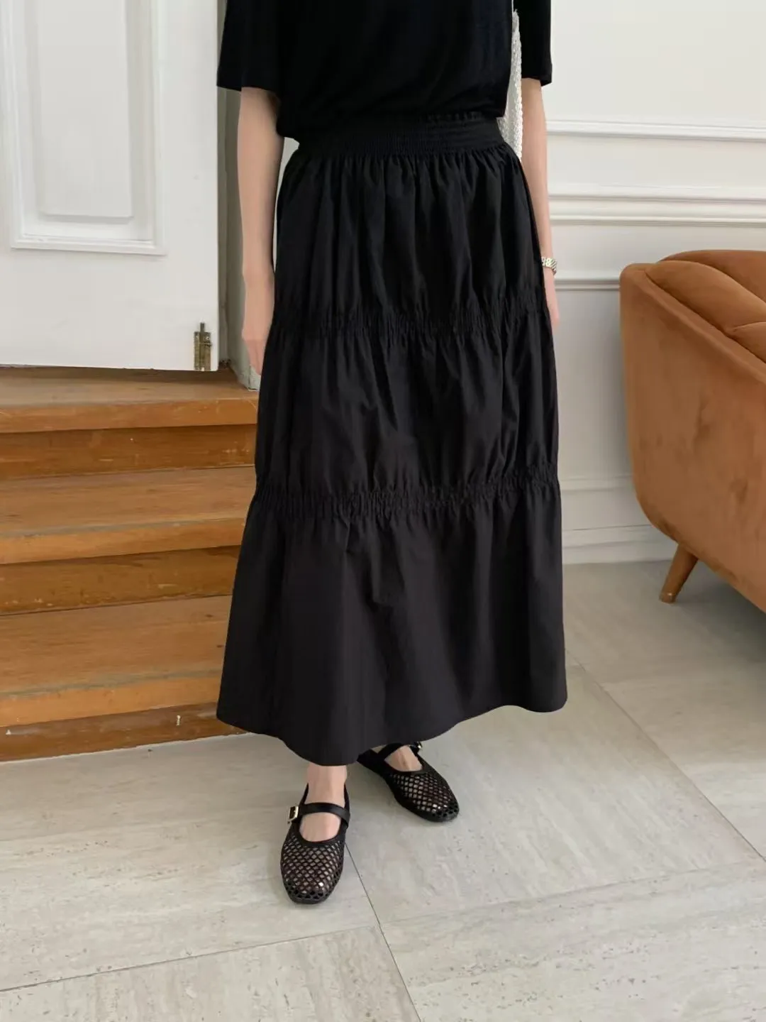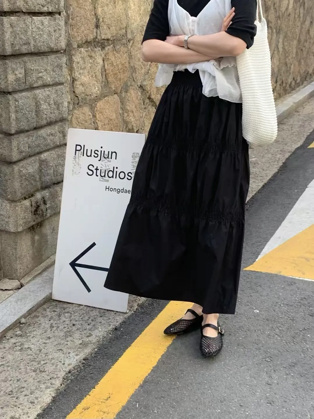 KB228質感百搭蛋糕長裙 白 藍 黑 官網價$1390 線上價$1360