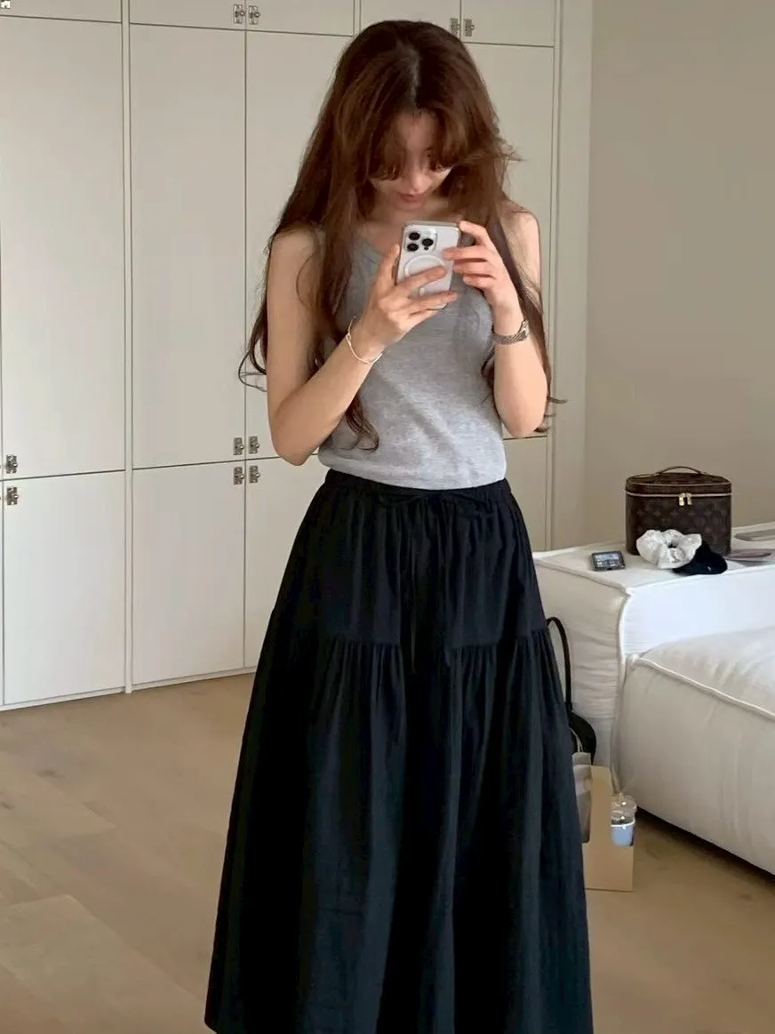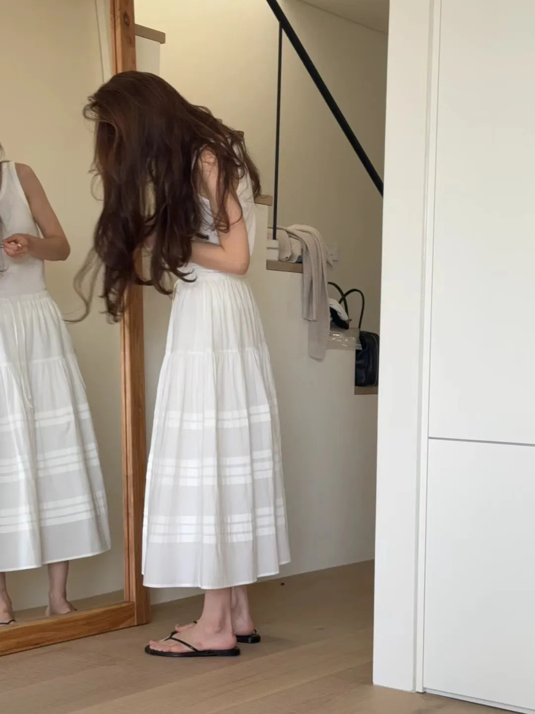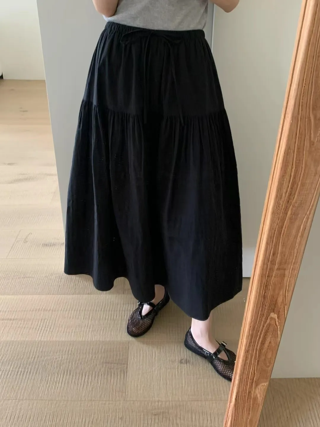 棉 全腰鬆緊有綁帶 橫條壓摺設計 自然傘擺透氣 XL友善 無口袋