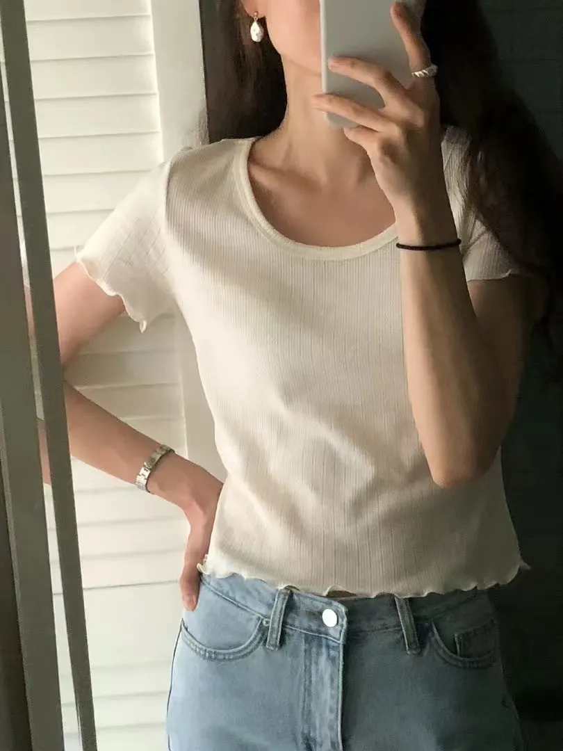 棉+彈力,有彈性 舒適寬U領