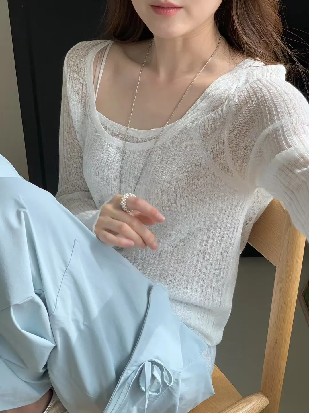 絲綢亞麻85%+彈力 層次兩件式不可拆 面料有彈性 穿到小L