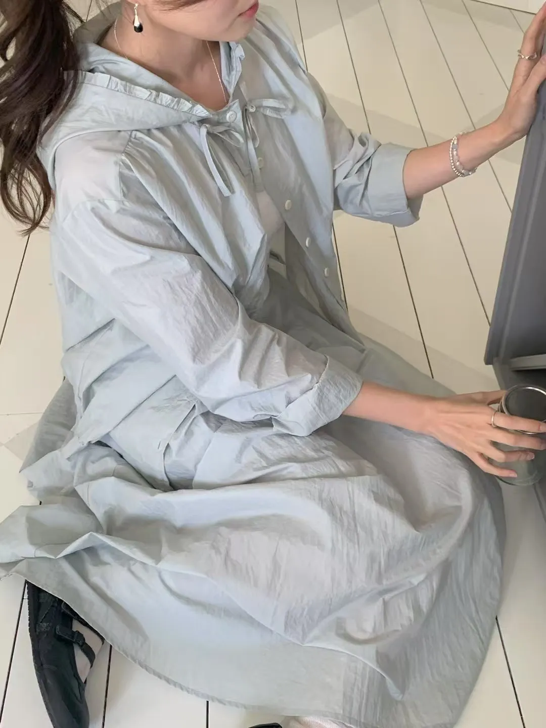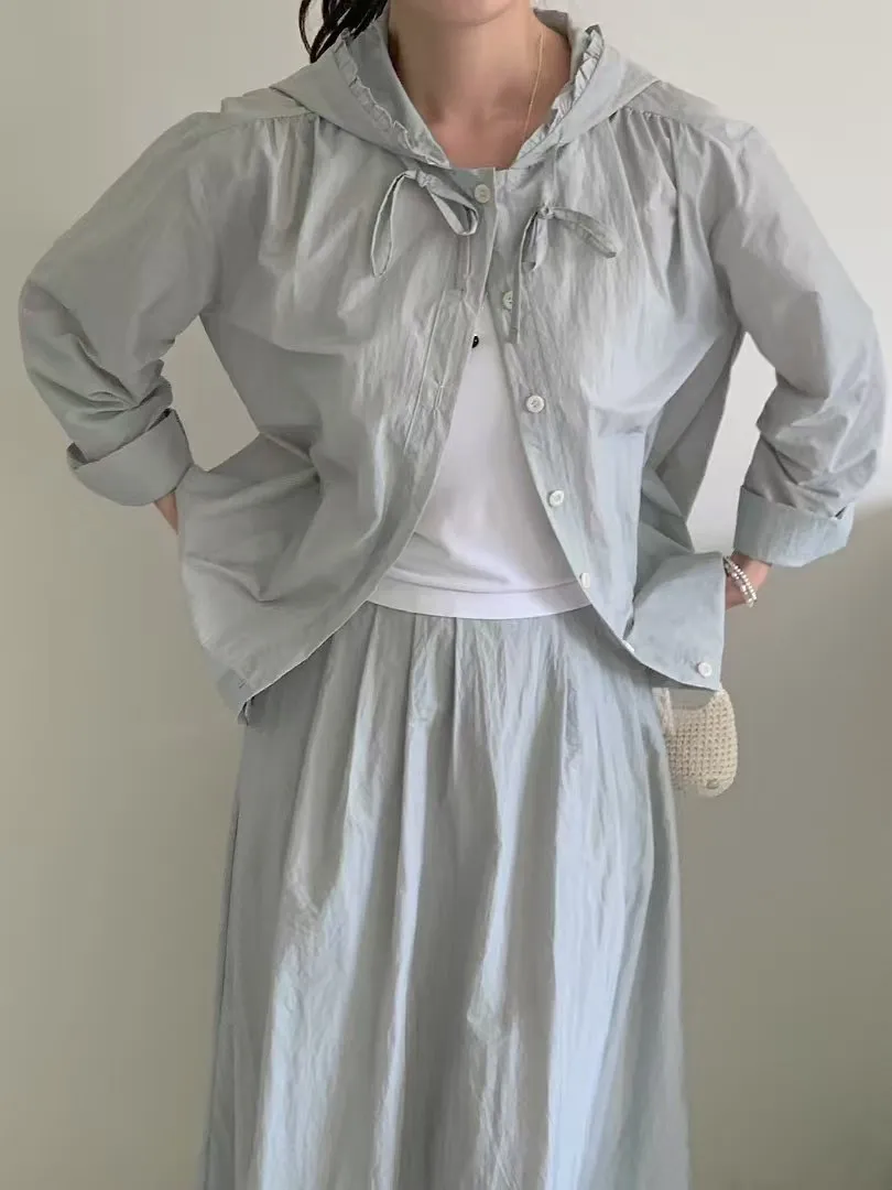 尼龍 極度薄款 可防曬外套 排釦穿脫 帽圍荷葉邊設計
