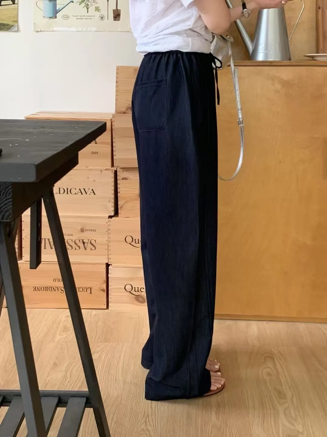 天絲50%+丹寧50% 涼感冰箱褲 透氣舒適 全腰鬆緊