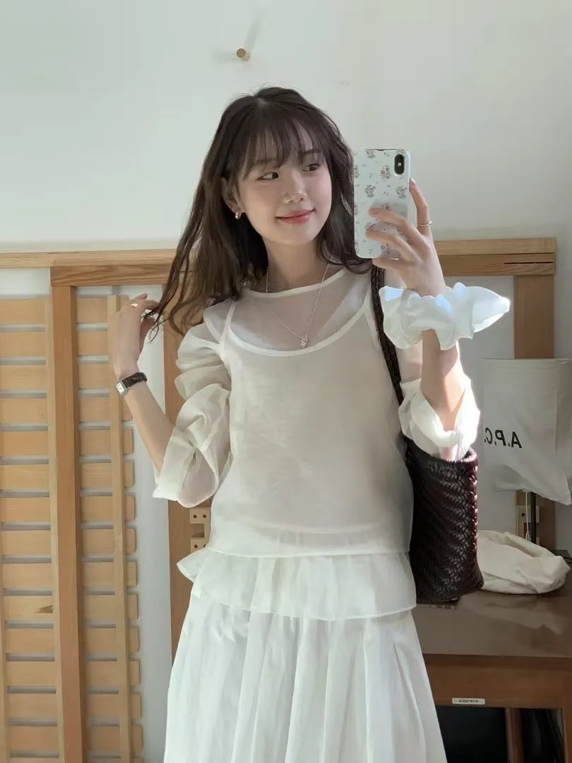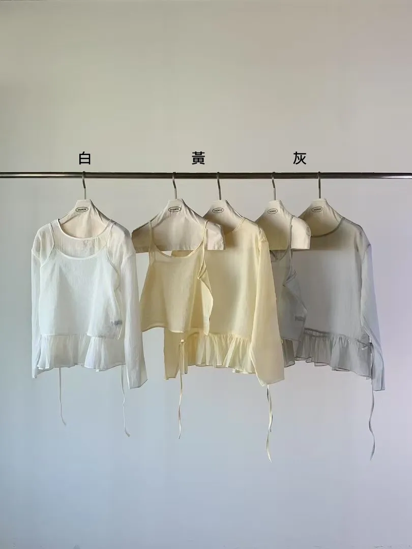 棉+尼龍 薄款透光 兩件可拆 腰有綁繩