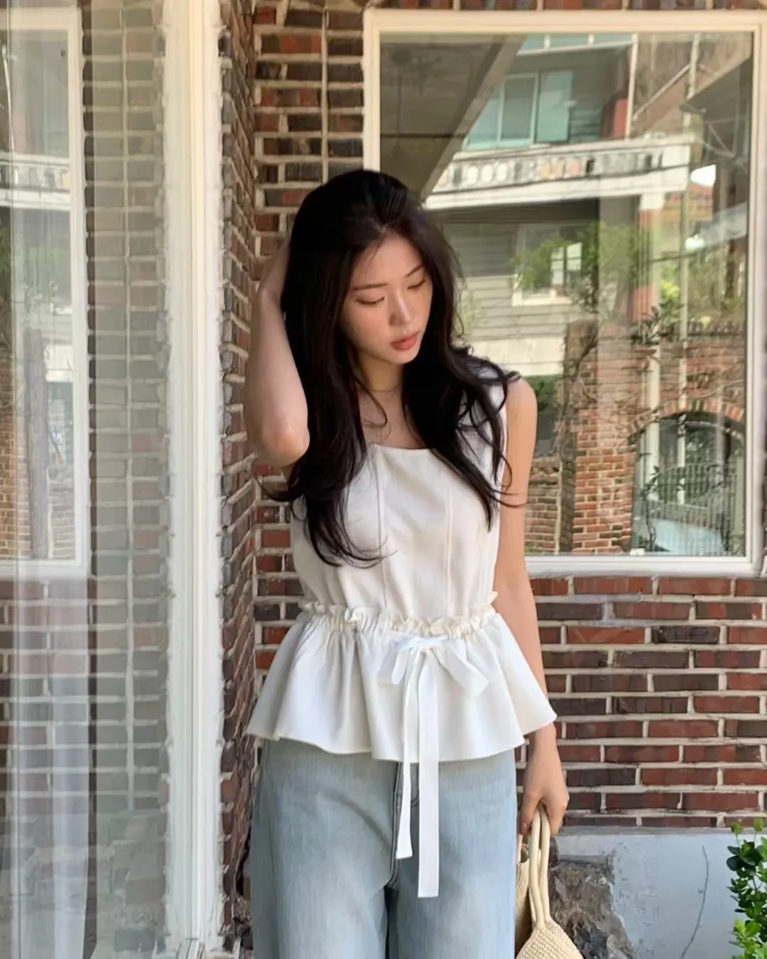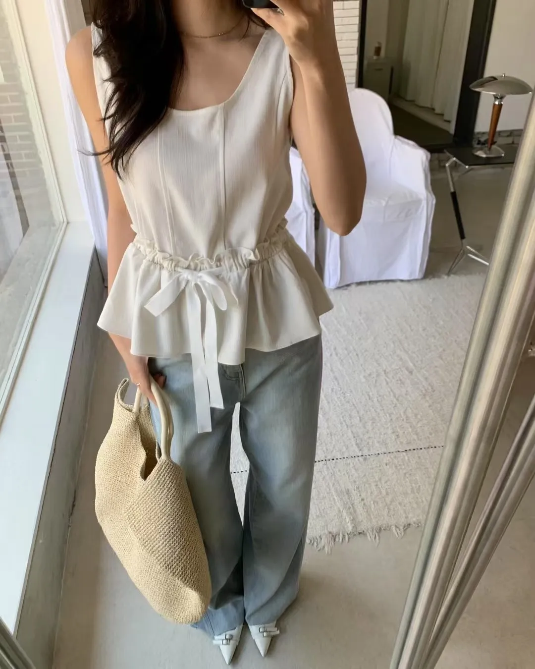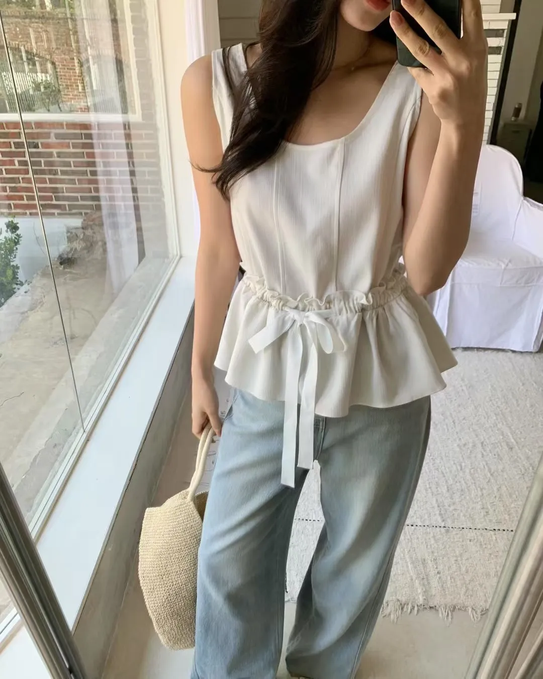 棉+亞麻 親膚舒適 前方領後V領 腰綁帶自然傘擺 夏天合適