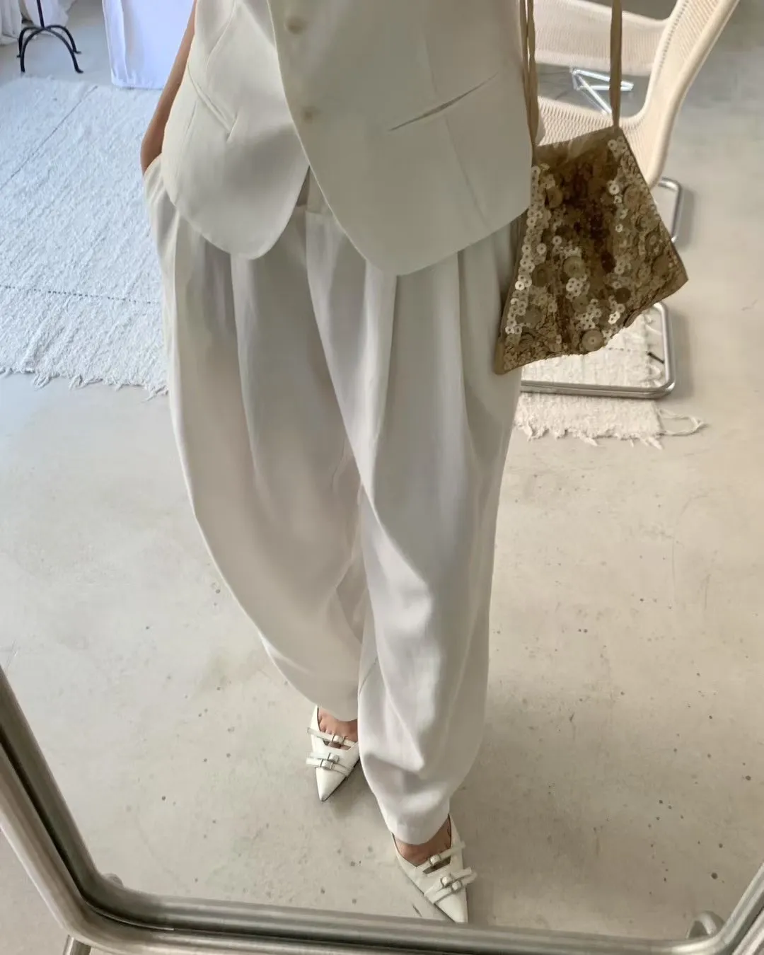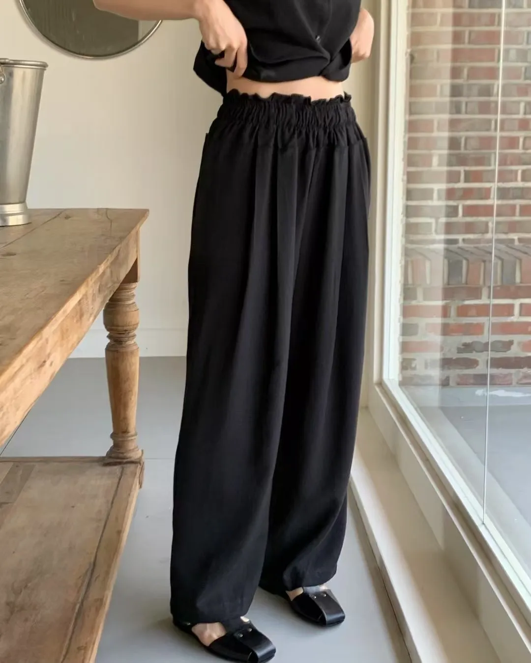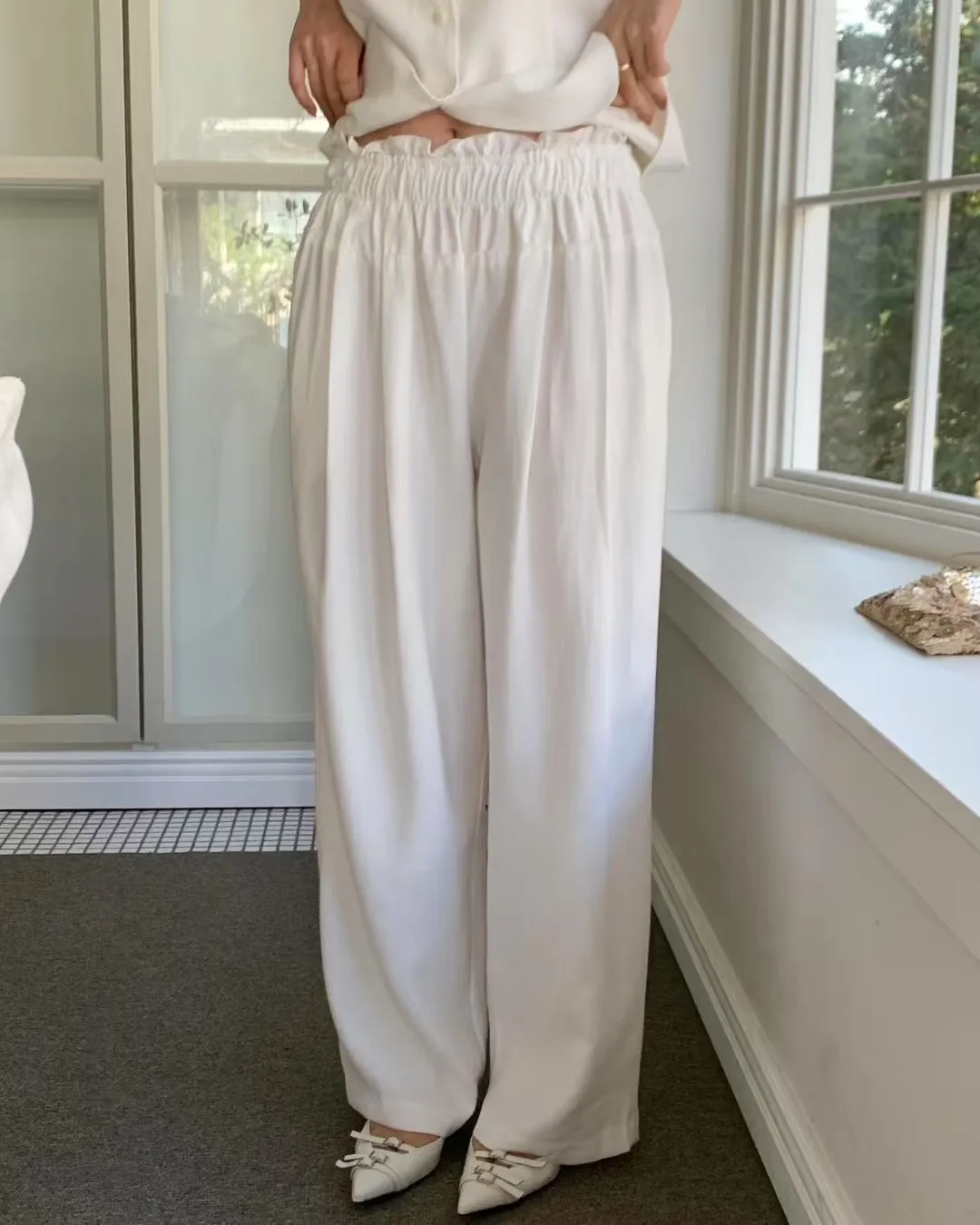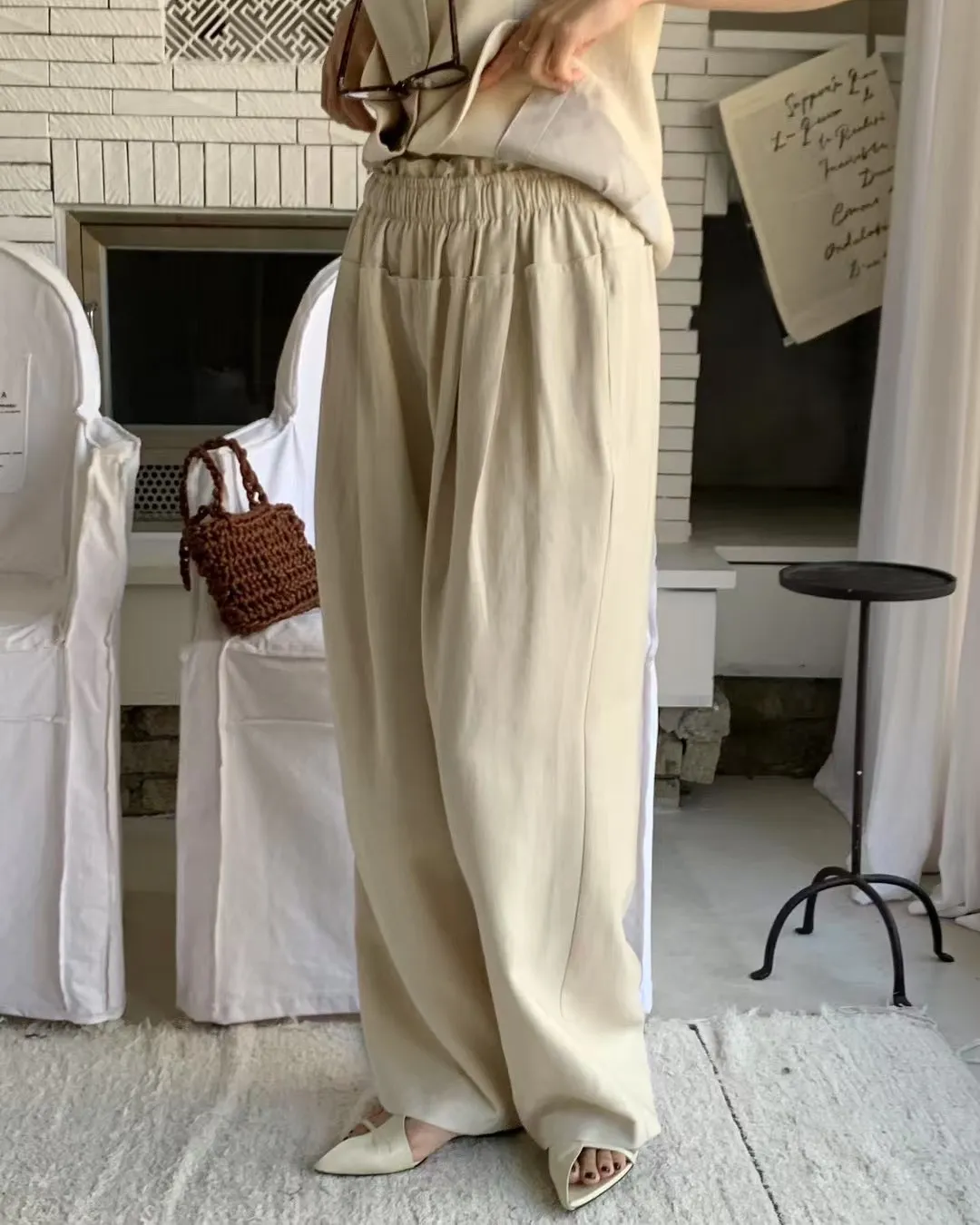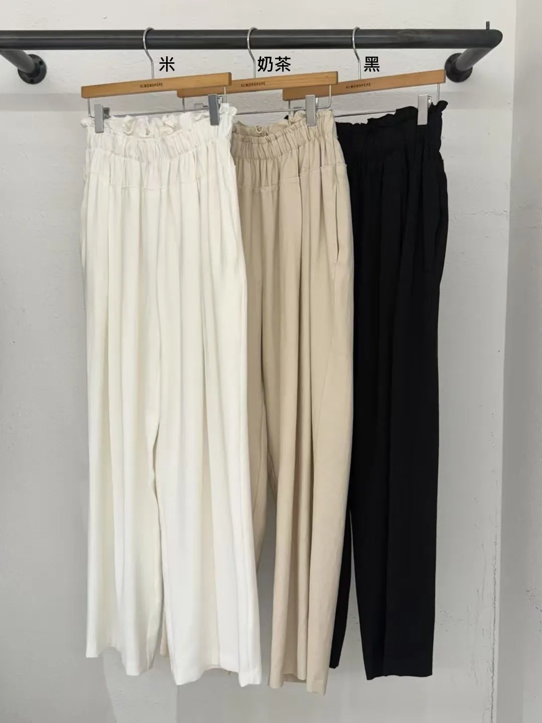 棉+亞麻 薄款涼爽面料 花苞腰鬆緊 寬鬆舒適