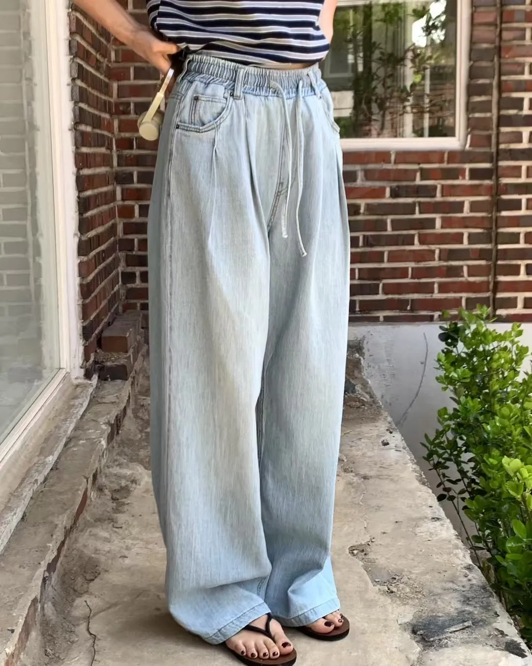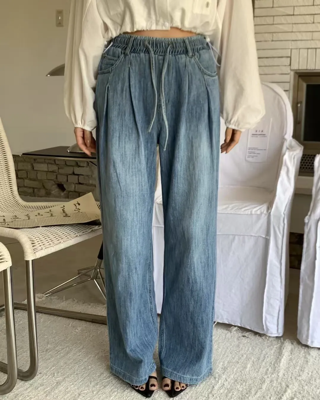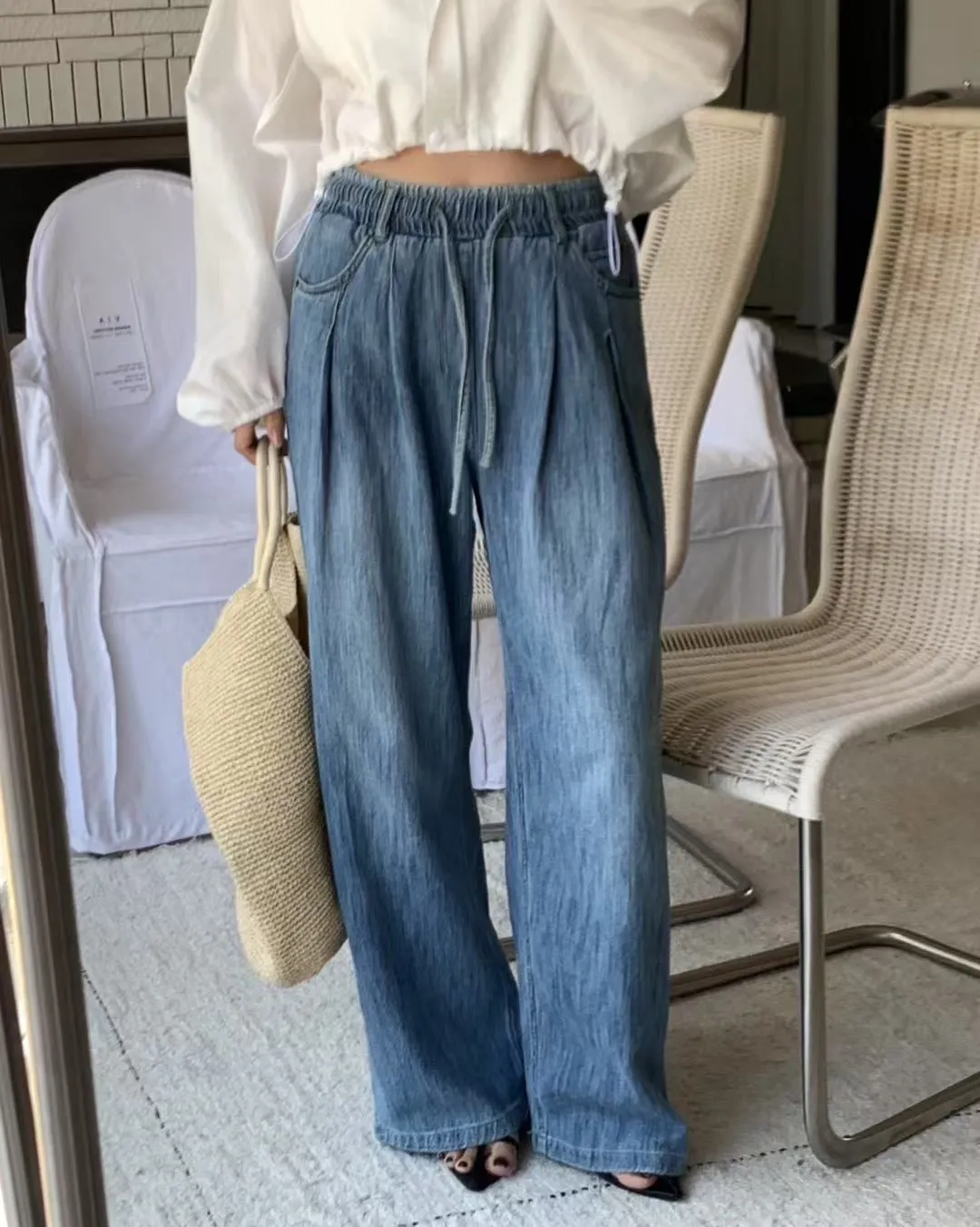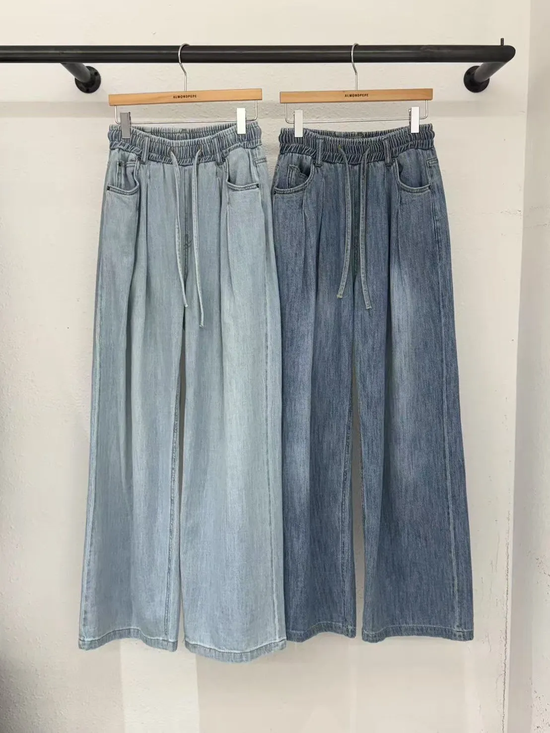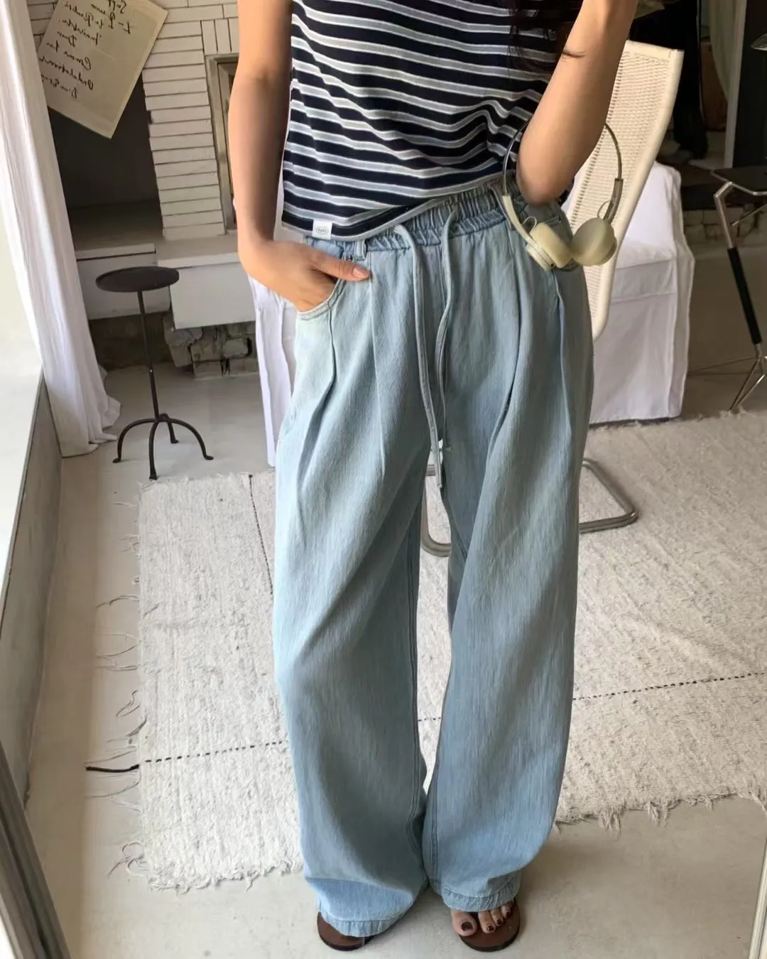 棉 薄款柔軟 抓皺垂墜度 有口袋 牛仔繩腰帶 非常適合夏天