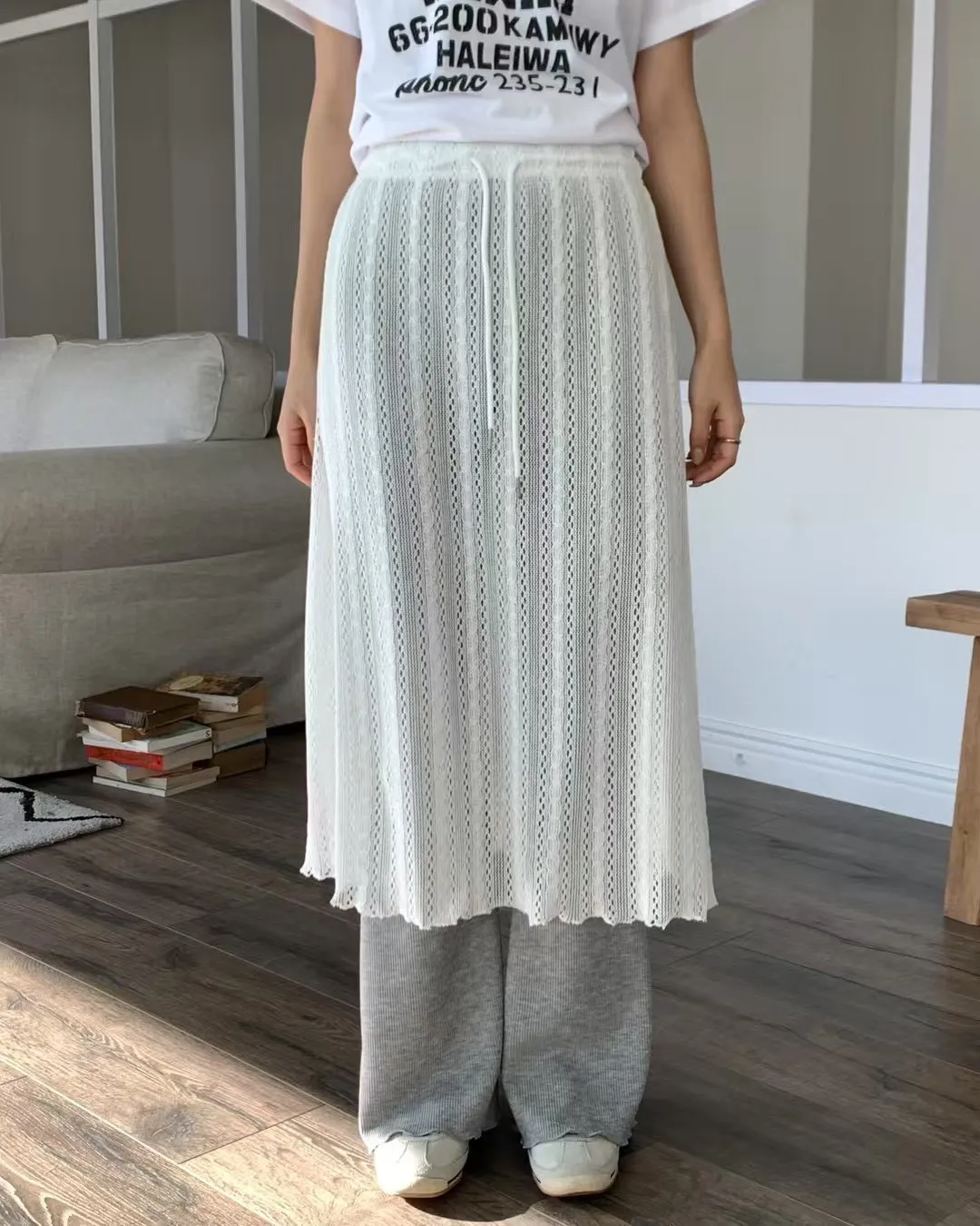 棉+聚酯 細緻簍空面料 不能單穿 全腰鬆緊有抽繩 L號友善