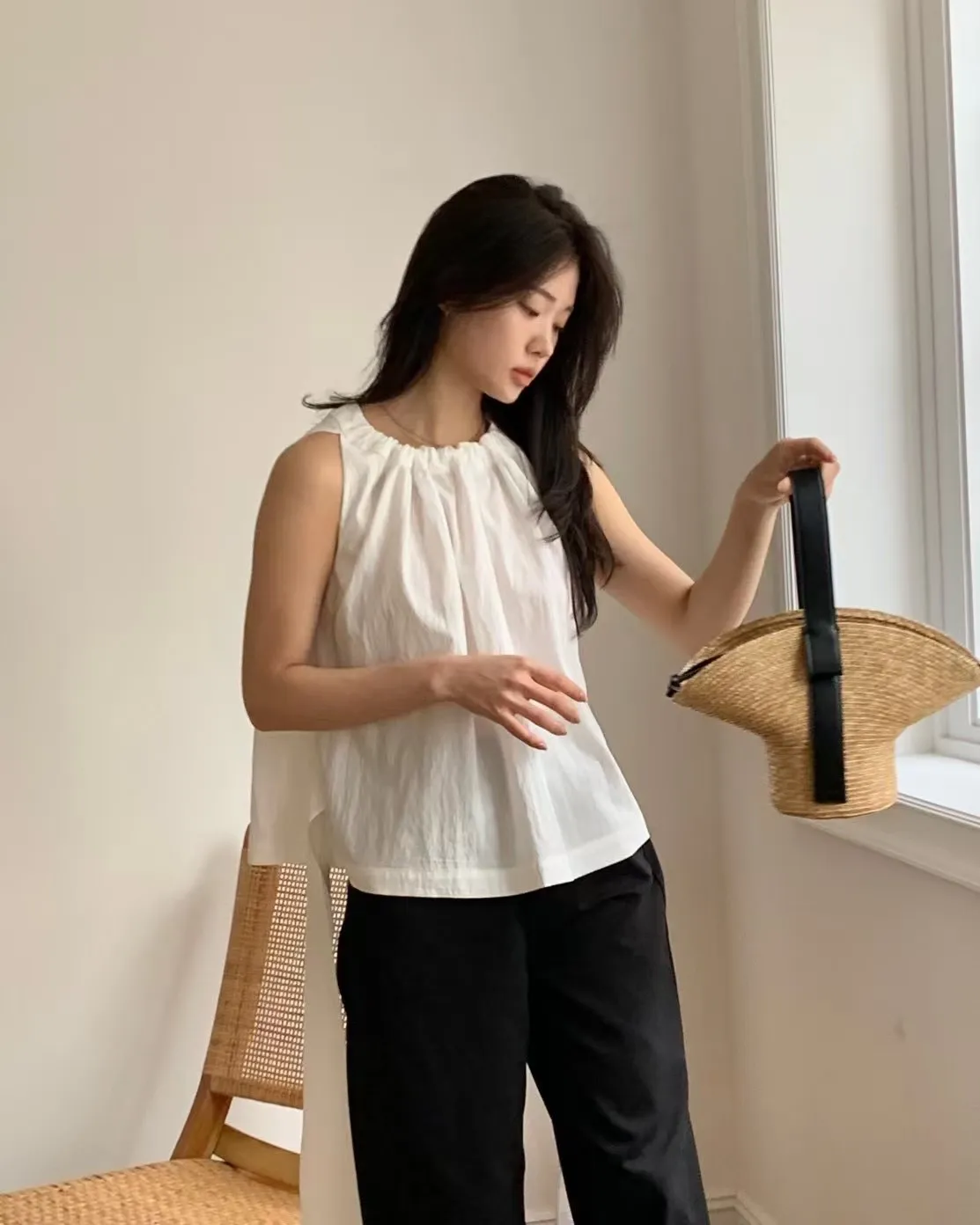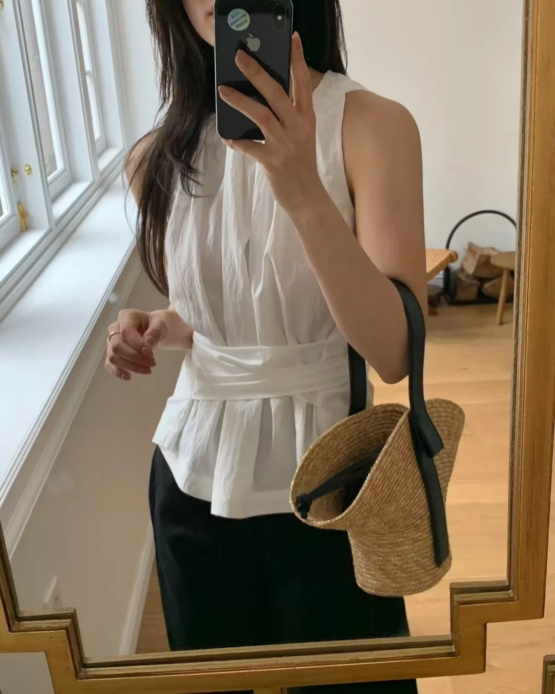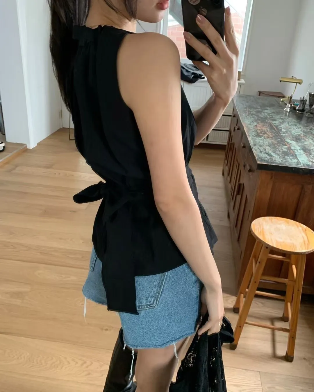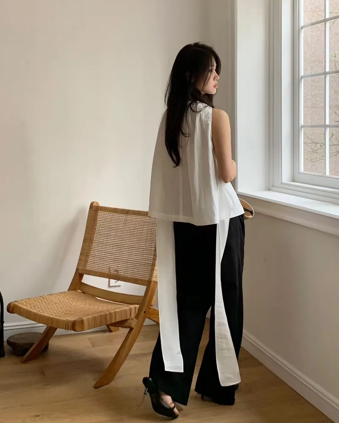 KB391綁帶設計款背心上衣 白 黑 官網價$1250 線上價$1220