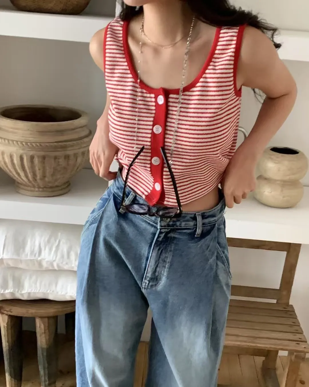 棉 排釦穿脫 短版好比例 舒適大U領 可單穿可疊穿