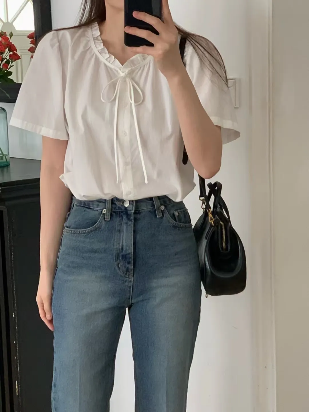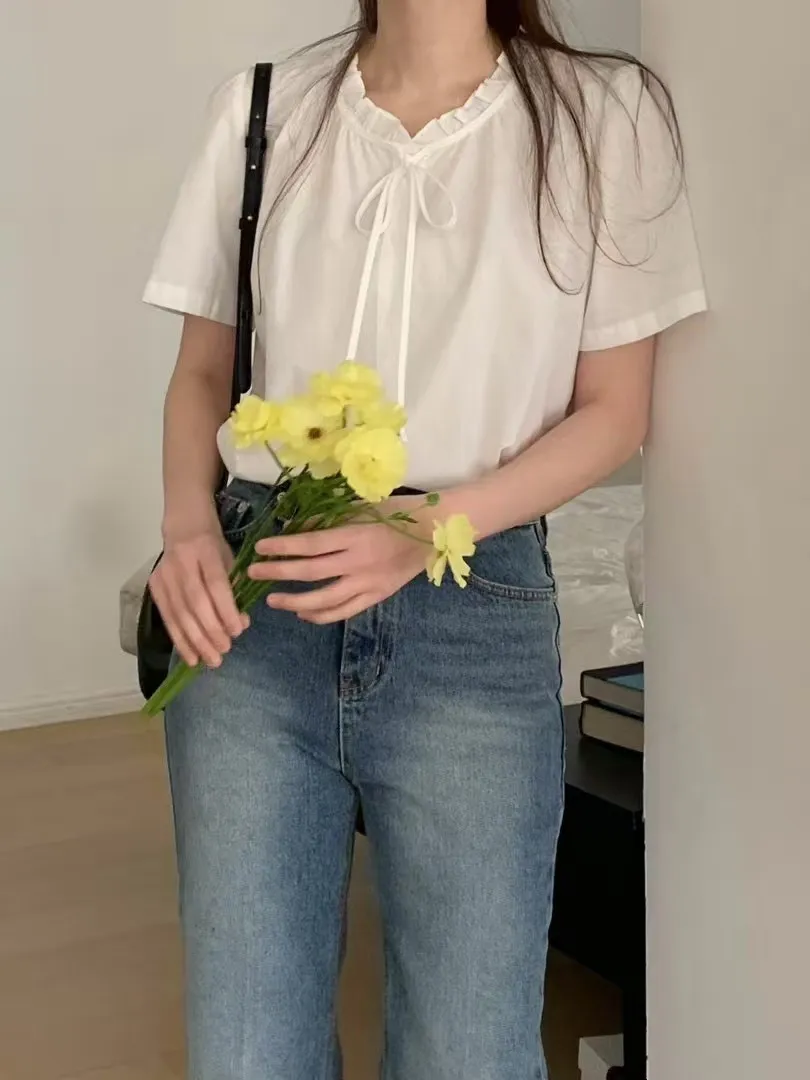 棉 薄款輕盈 細緻荷葉領口 氣質胸綁帶 適合夏天 L號友善