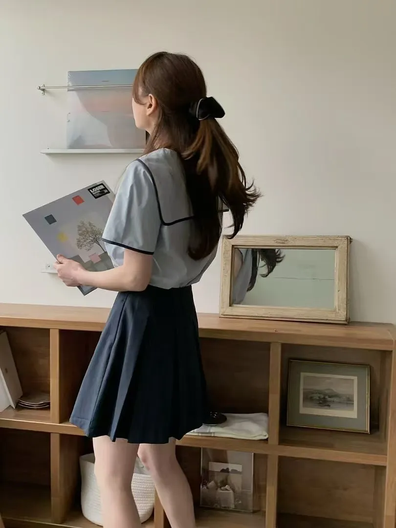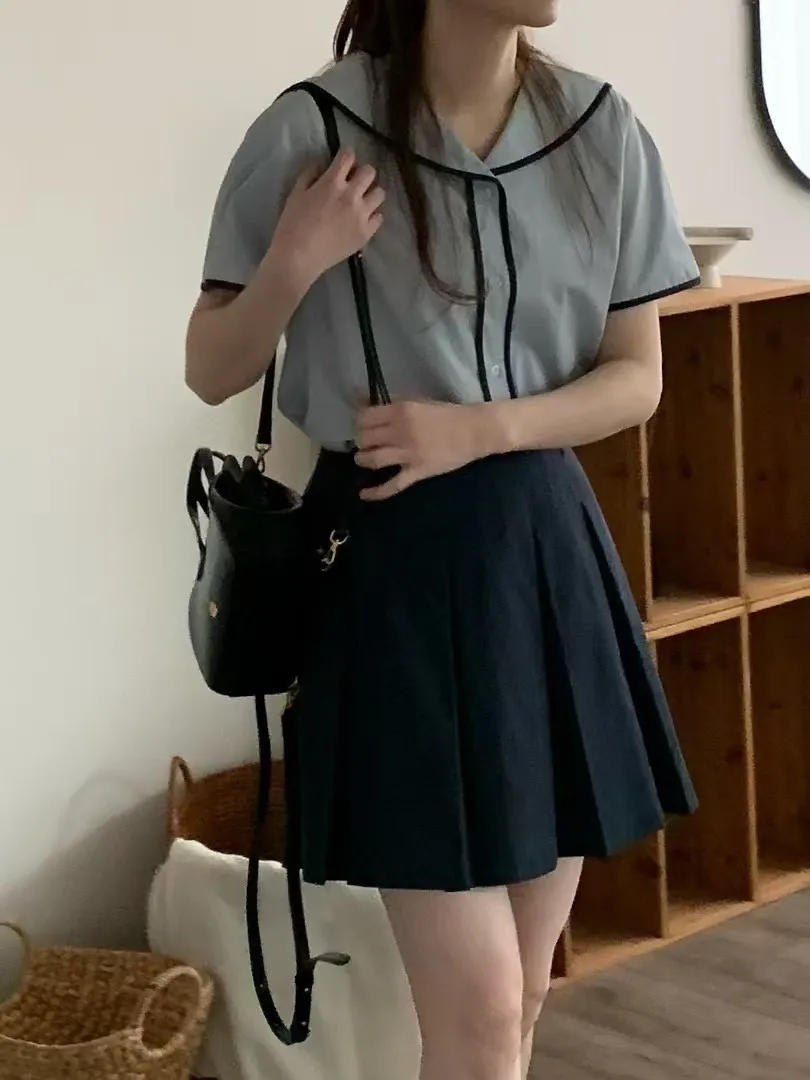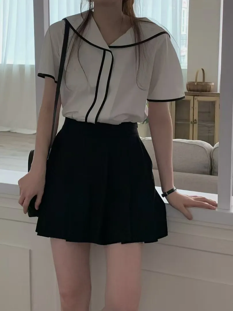 棉 舒適面料 法式滾邊 版型寬鬆舒適 背後水手翻領