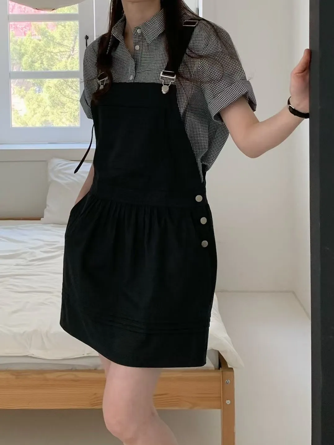 棉 薄款輕盈面料 肩帶可調 側腰三節釦 夏天合適 穿到小L