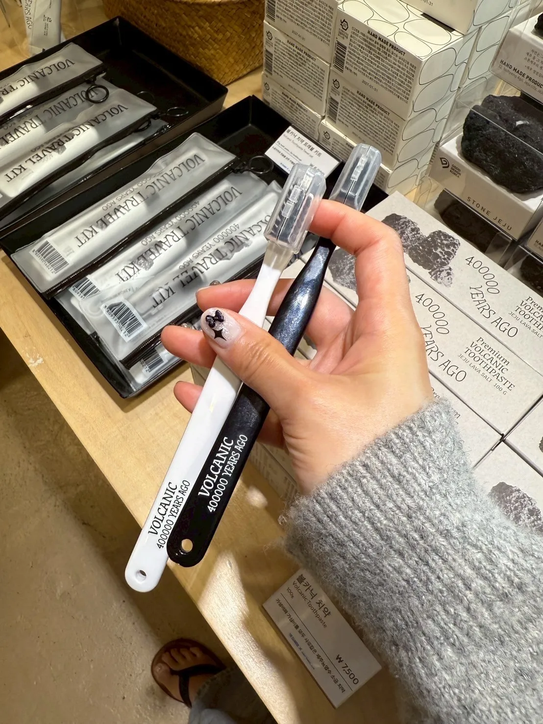 火山泥牙膏,有白色和黑色牙刷,隨機出貨